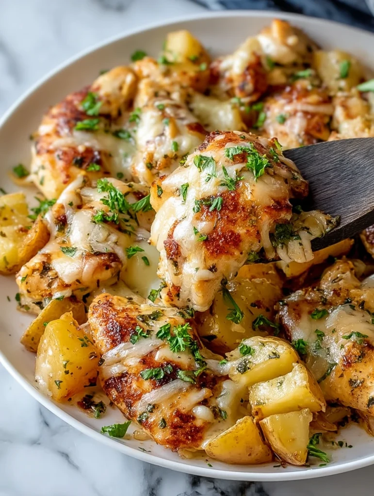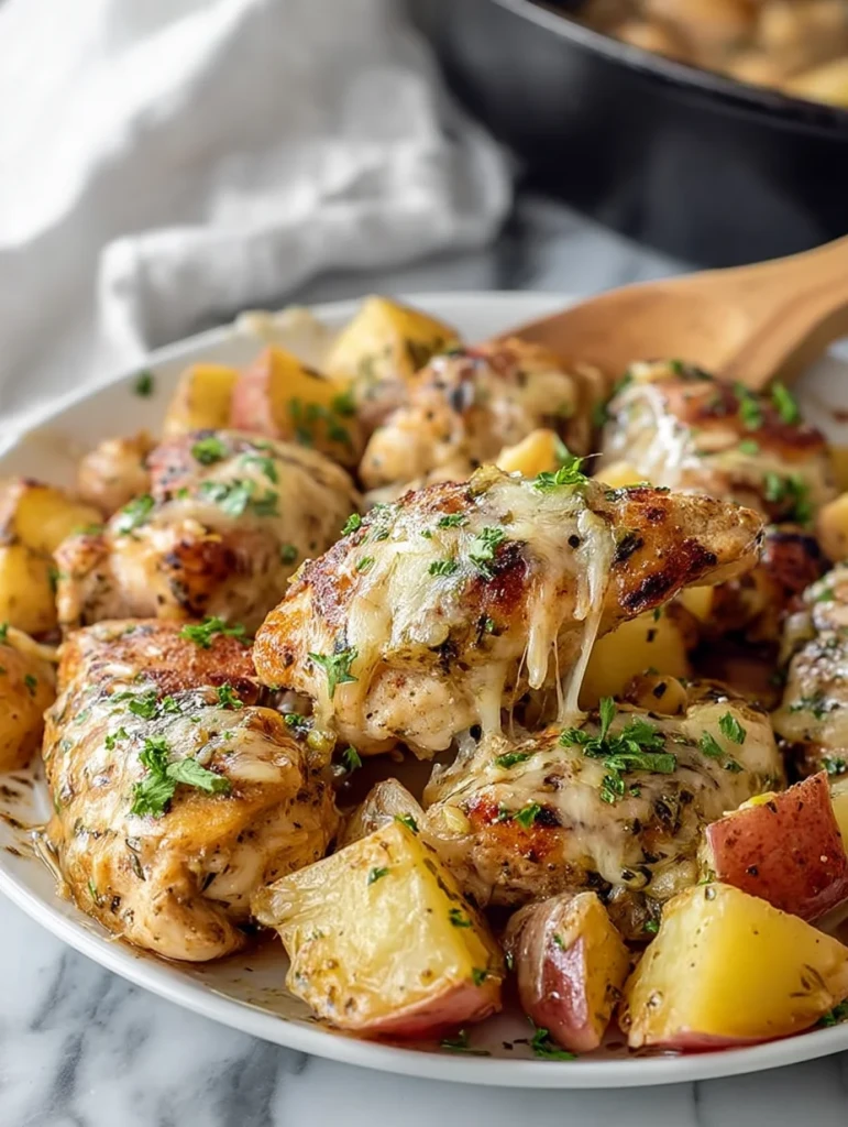 Want a skillet meal that delivers on both comfort and wow-factor? This Garlic Parmesan Chicken and Potatoes Skillet has juicy chicken thighs, buttery potatoes, and loads of melty cheese, all infused with fresh garlic and herbs. It’s the perfect weeknight dinner idea, bringing together easy dinner prep and cozy comfort food flavors. Whether you’re looking for a simple one-pan recipe or a hearty family meal, this quick dinner recipe covers it all—crispy chicken, creamy mozzarella, and golden parmesan for the win!
