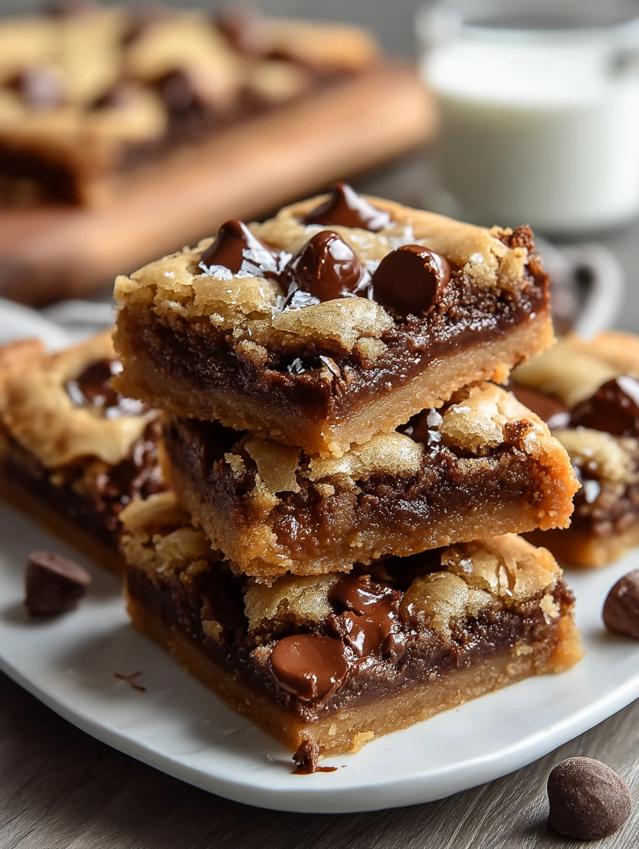 For me, the magic is in the layers. You start with a buttery chocolate chip cookie base, add a rich, almost brownie-like fudge center, then finish with little pockets of soft cookie dough on top. As it bakes, the layers melt together just enough to stay distinct but still gooey.