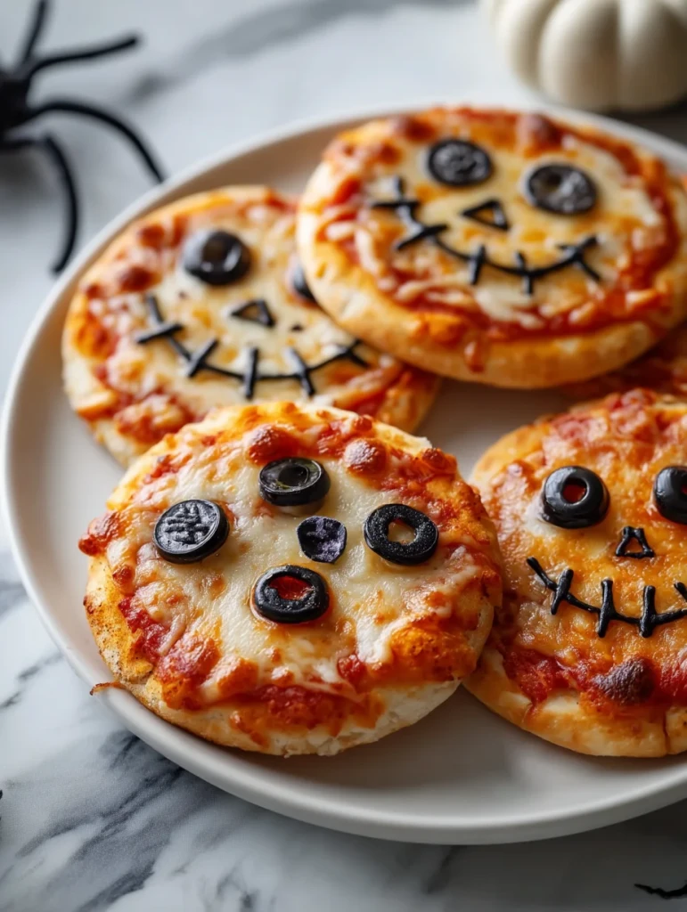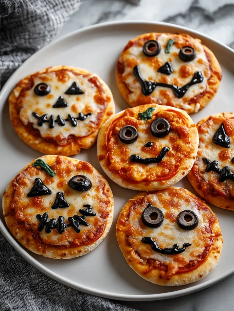 Keywords: halloween pizza, mini pizza, spooky snack, jack-o-lantern food, halloween dinner ideas