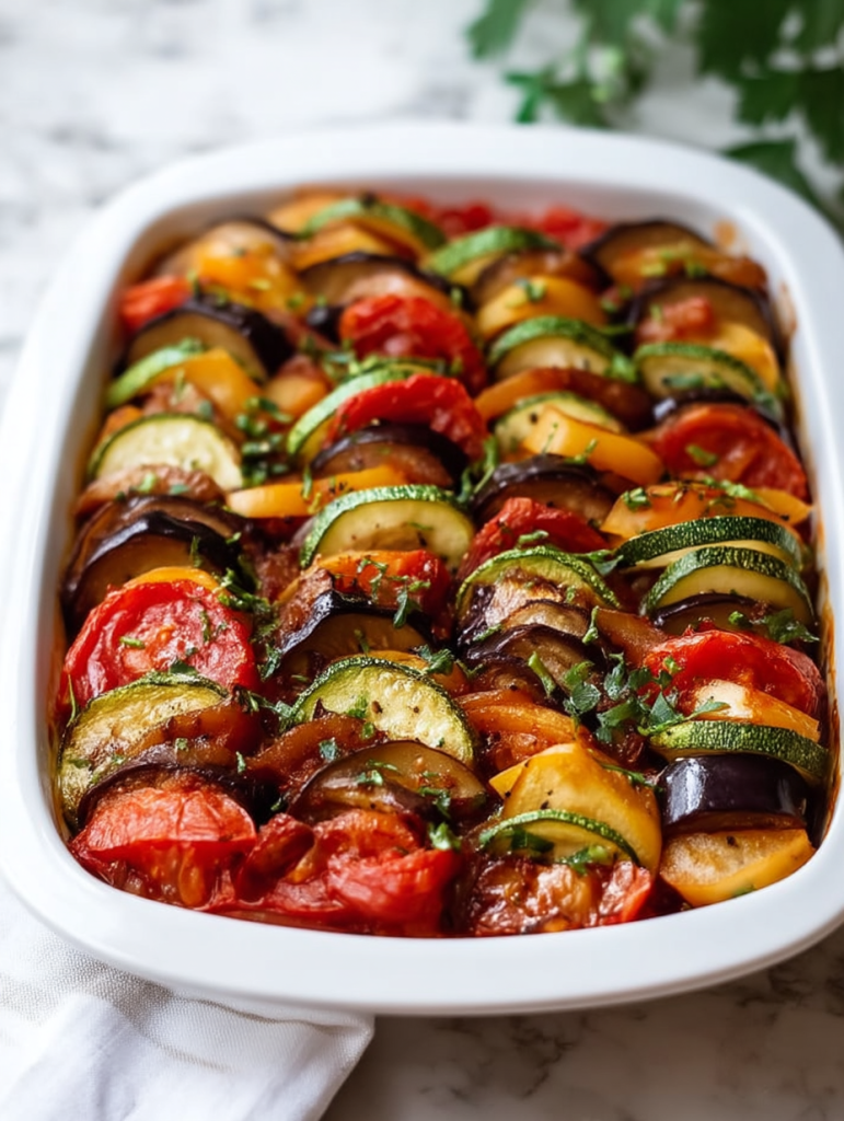 Healthy Baked Ratatouille Zucchini, Tomato & Eggplant Medley