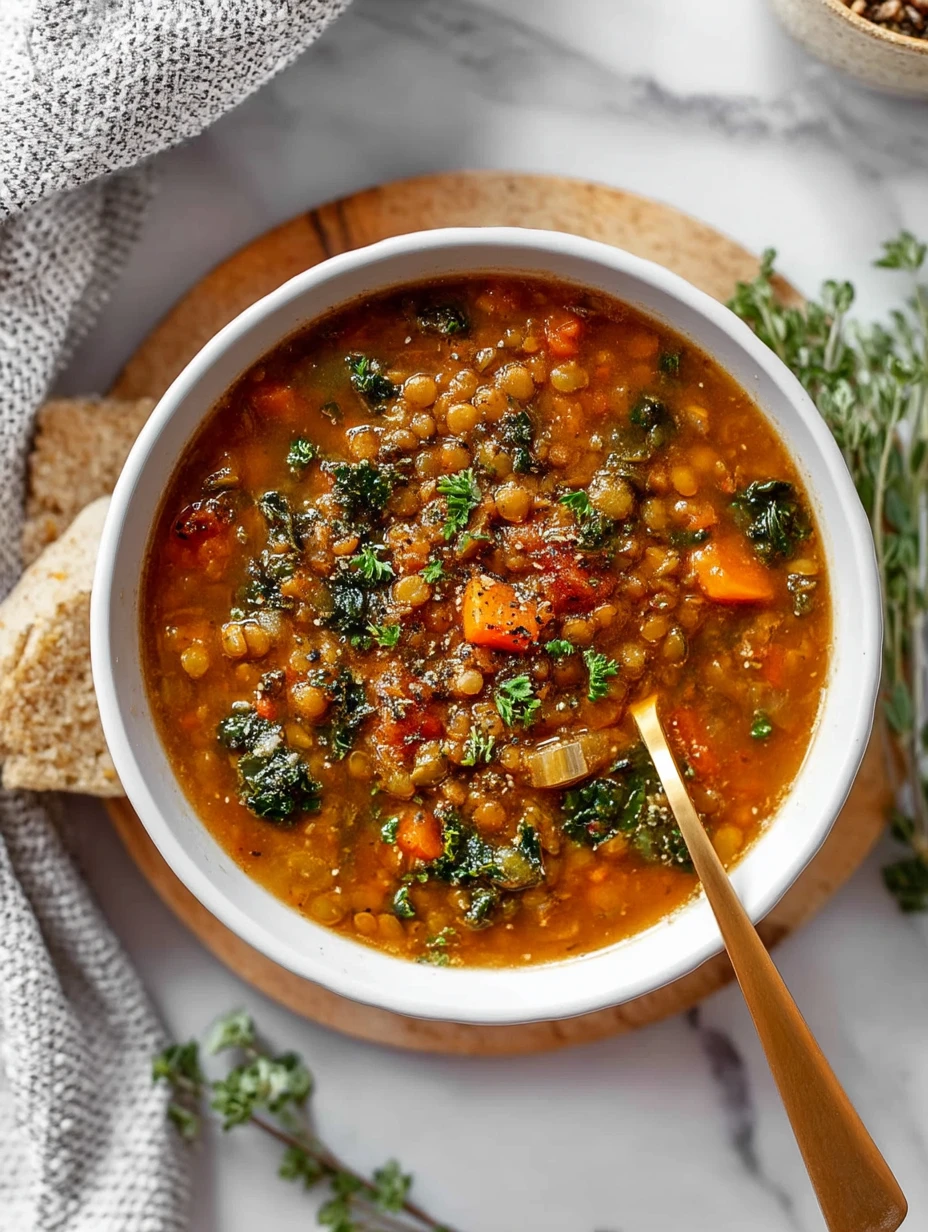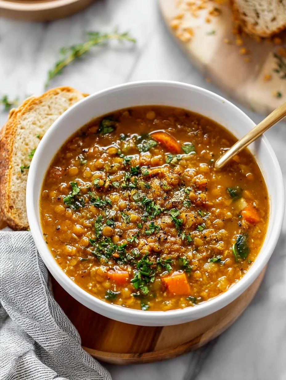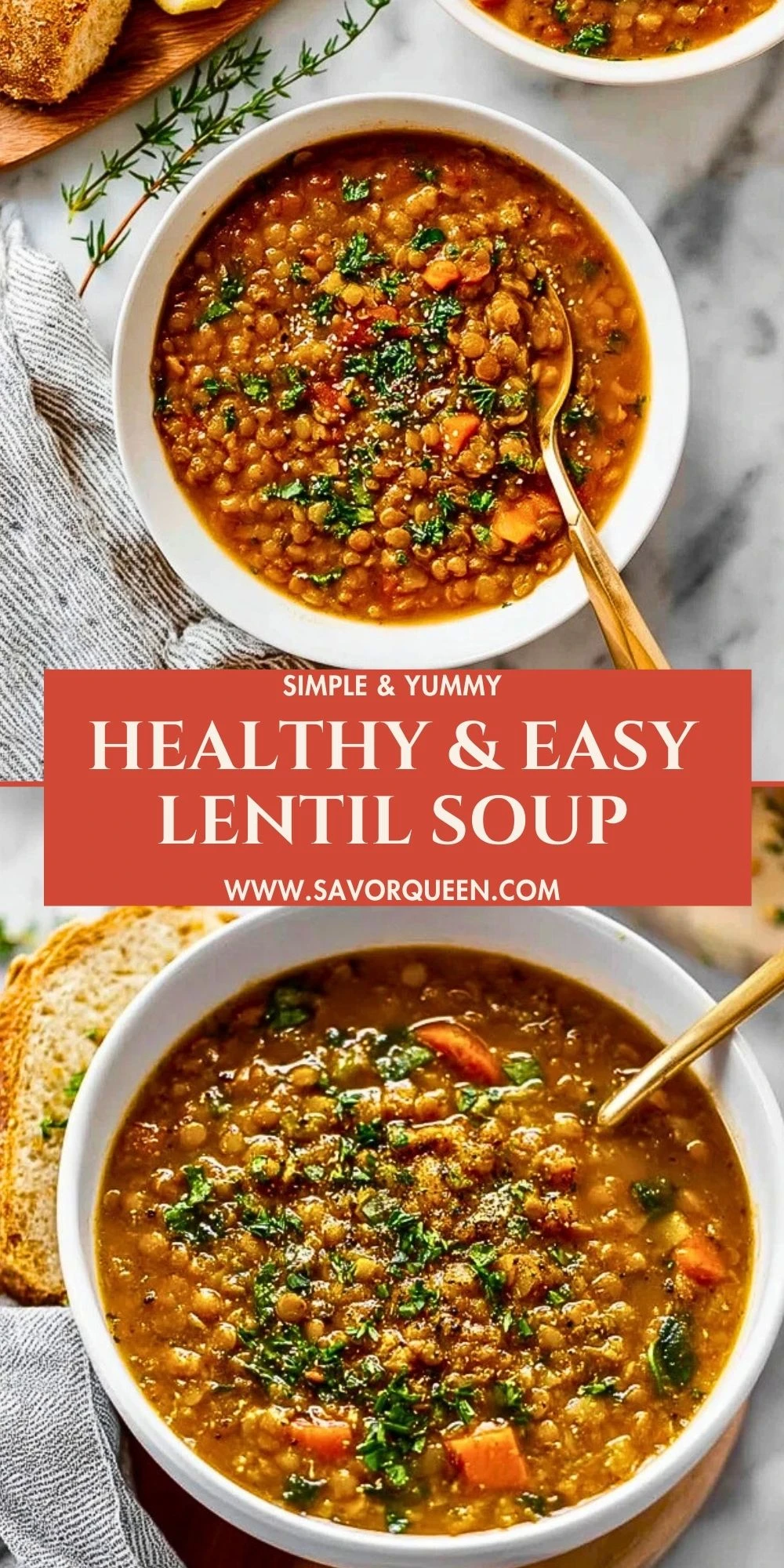 Keywords: healthy lentil soup, easy dinner, vegan soup, cozy soup recipe, quick weeknight dinner