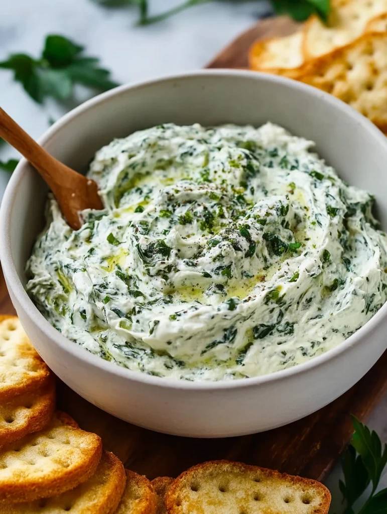 What makes this dip stand out is its balance: the earthy spinach and zesty herbs bring freshness, while the cream cheese base keeps every bite satisfyingly indulgent. Whether served with crackers, veggies, or toasted bread, this dip always disappears fast.