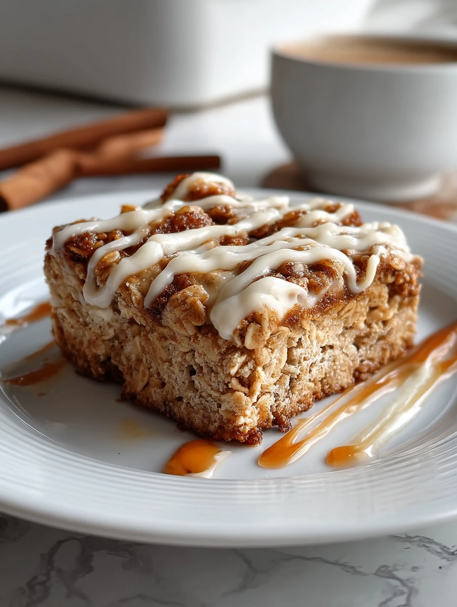 Drizzle the icing generously over the warm baked oatmeal. It will melt slightly into the top and make those cinnamon swirls even more irresistible.