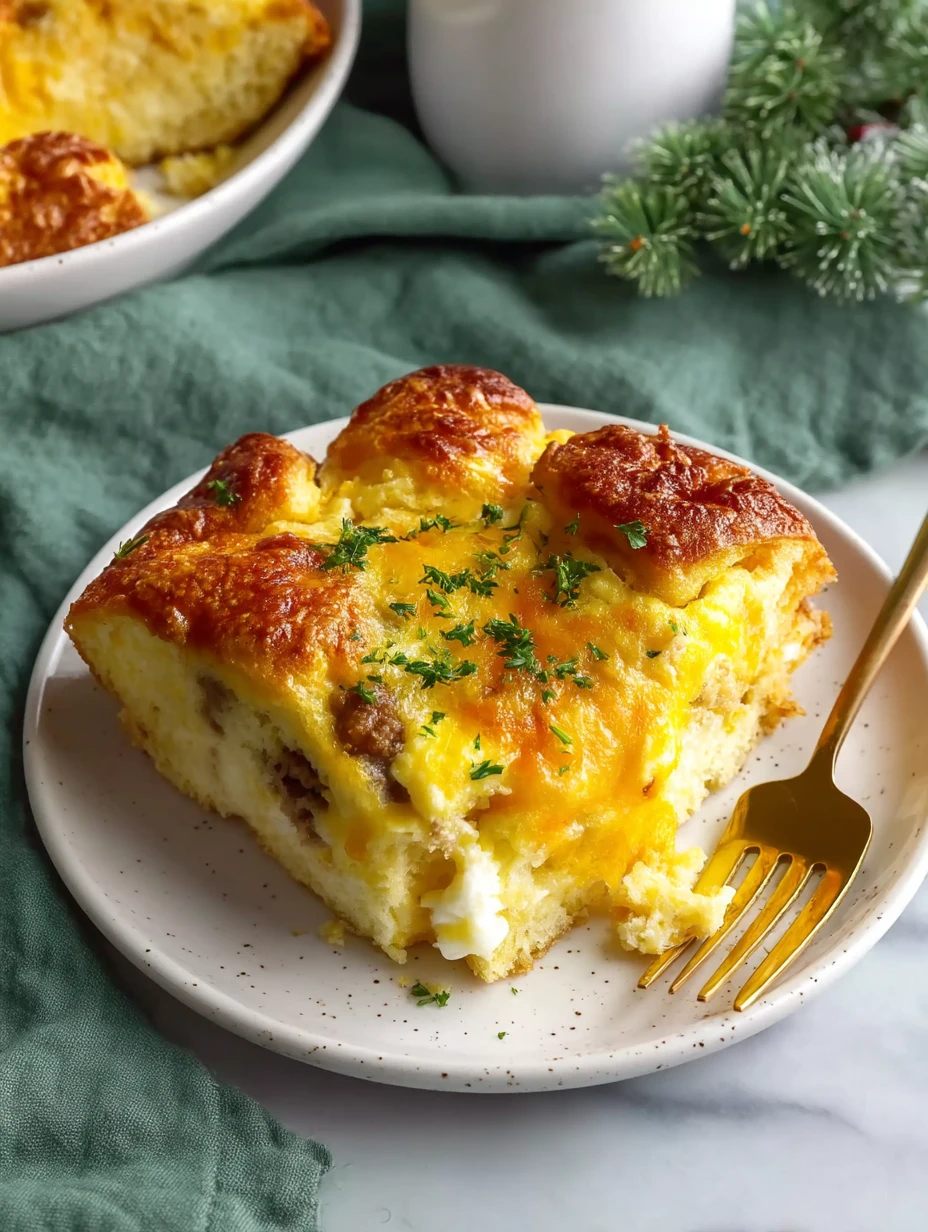 This casserole looks impressive, but it’s really all about easy layers. I like to think of it as a breakfast lasagna: crescent rolls on the bottom, a hearty sausage layer in the middle, and a creamy egg-and-cheese layer poured over the top.