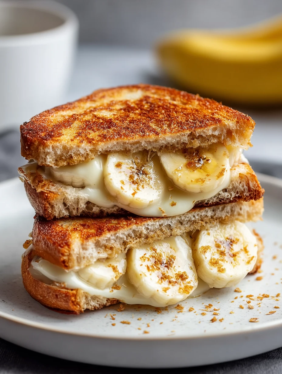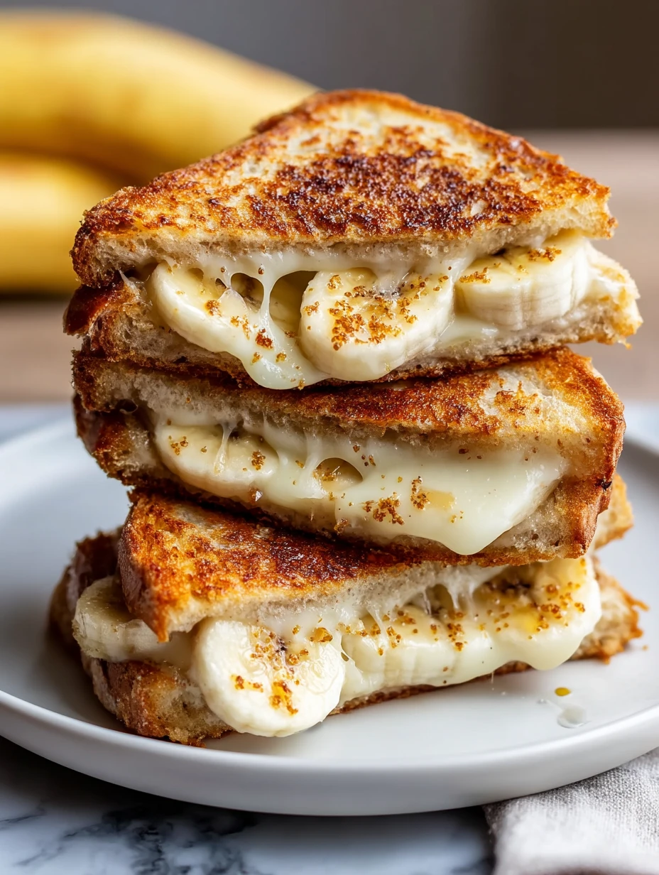 Remove from heat, let it rest a minute, then slice and serve warm. The cheese should be gooey, the banana slightly caramelized, and the bread irresistibly crunchy.