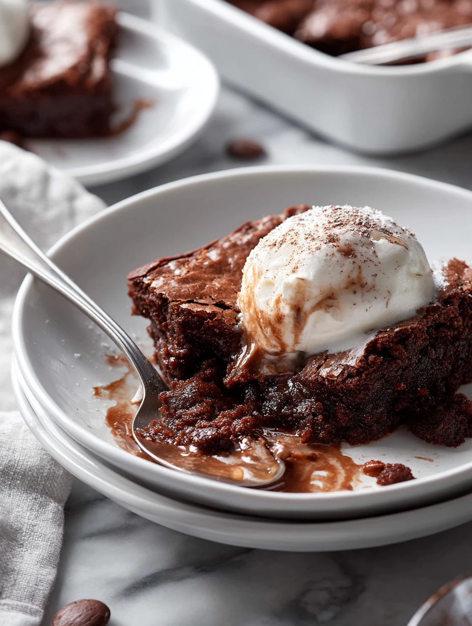 For me, this dessert is all about texture. The top bakes into a thin, shiny crust while the inside stays soft, dense, and pudding-like. It is not a cakey brownie, and it is not quite a lava cake either. It lands right in that perfect middle ground where the spoon sinks in easily and brings up a rich, chocolatey bite every time.
