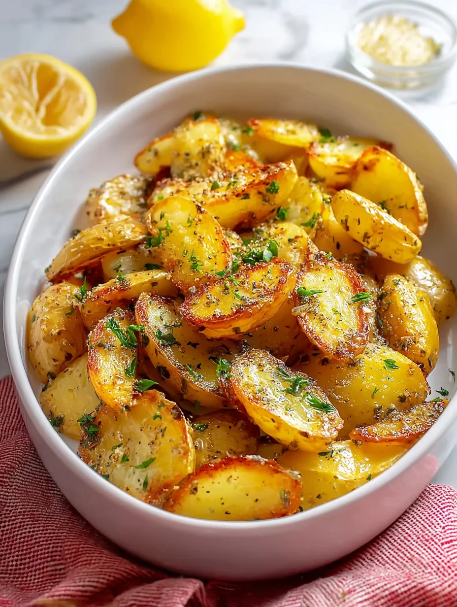 Keywords: Greek lemon potatoes, roasted potatoes, easy potato recipe, Mediterranean side dish, oven roasted potatoes, lemon garlic potatoes, dinner ideas, easy recipe, food ideas