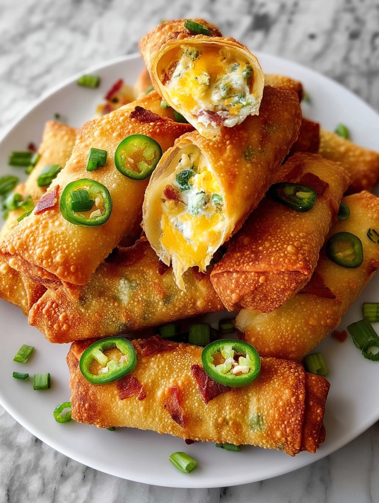 Crispy, cheesy, and packed with bold flavor, these Jalapeno Popper Egg Rolls are the ultimate snack or appetizer! A savory blend of cream cheese, sharp cheddar, bacon, jalapenos, and green onions is tightly wrapped in an egg roll shell and fried until golden perfection. Whether you’re searching for party food ideas, quick appetizer recipes, or a game day finger food with a spicy twist, this easy recipe is a surefire crowd-pleaser. Serve them fresh and hot with a cool dipping sauce for the perfect bite every time.