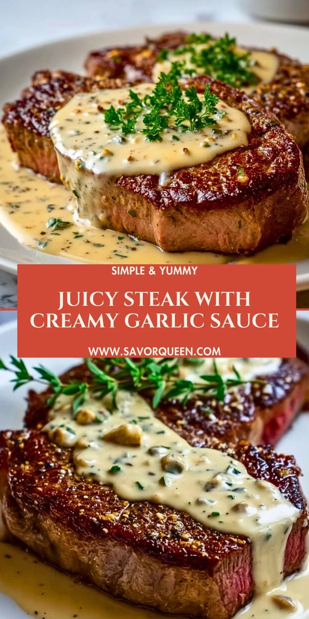 Keywords: juicy steak, creamy garlic sauce, easy dinner, steak recipe, garlic cream sauce