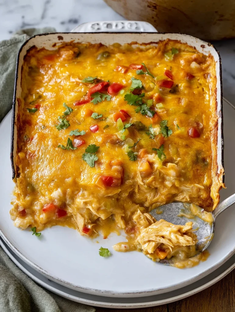Golden, creamy, and full of Tex-Mex flavor, King Ranch Chicken Casserole is a Southern comfort food classic that layers tender chicken, melty cheese, spicy tomatoes, and corn tortillas into a warm, baked masterpiece. It’s the kind of recipe that brings the whole family running to the dinner table, perfect for busy weeknights, potlucks, or any time you crave cozy and satisfying food.