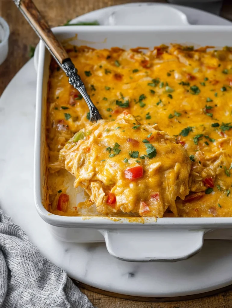 It’s all about the layers and the bold flavor combo. The richness of the cream of chicken soup mixed with diced tomatoes with green chiles creates a creamy base that hugs every piece of shredded chicken. Add in those slightly softened corn tortillas, and you’ve got texture. Finish it off with a generous amount of cheese baked to bubbly perfection, and you’ll see why this recipe never goes out of style.