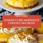 Bright, tangy, and beautifully decadent, this Lemon Curd Meringue Cheesecake Bliss brings together everything you love about citrus desserts and creamy cheesecake in one stunning bite. With a crisp graham cracker crust, a zesty lemon-infused filling, a silky layer of lemon curd, and a golden-swirled meringue on top, this cheesecake is perfect for spring and summer gatherings. Whether you’re hunting for easy dessert ideas, an impressive dinner finale, or the ultimate citrus dessert, this showstopper checks all the boxes—zesty, creamy, and visually stunning. A must-save for anyone looking for unique and easy cheesecake recipes!