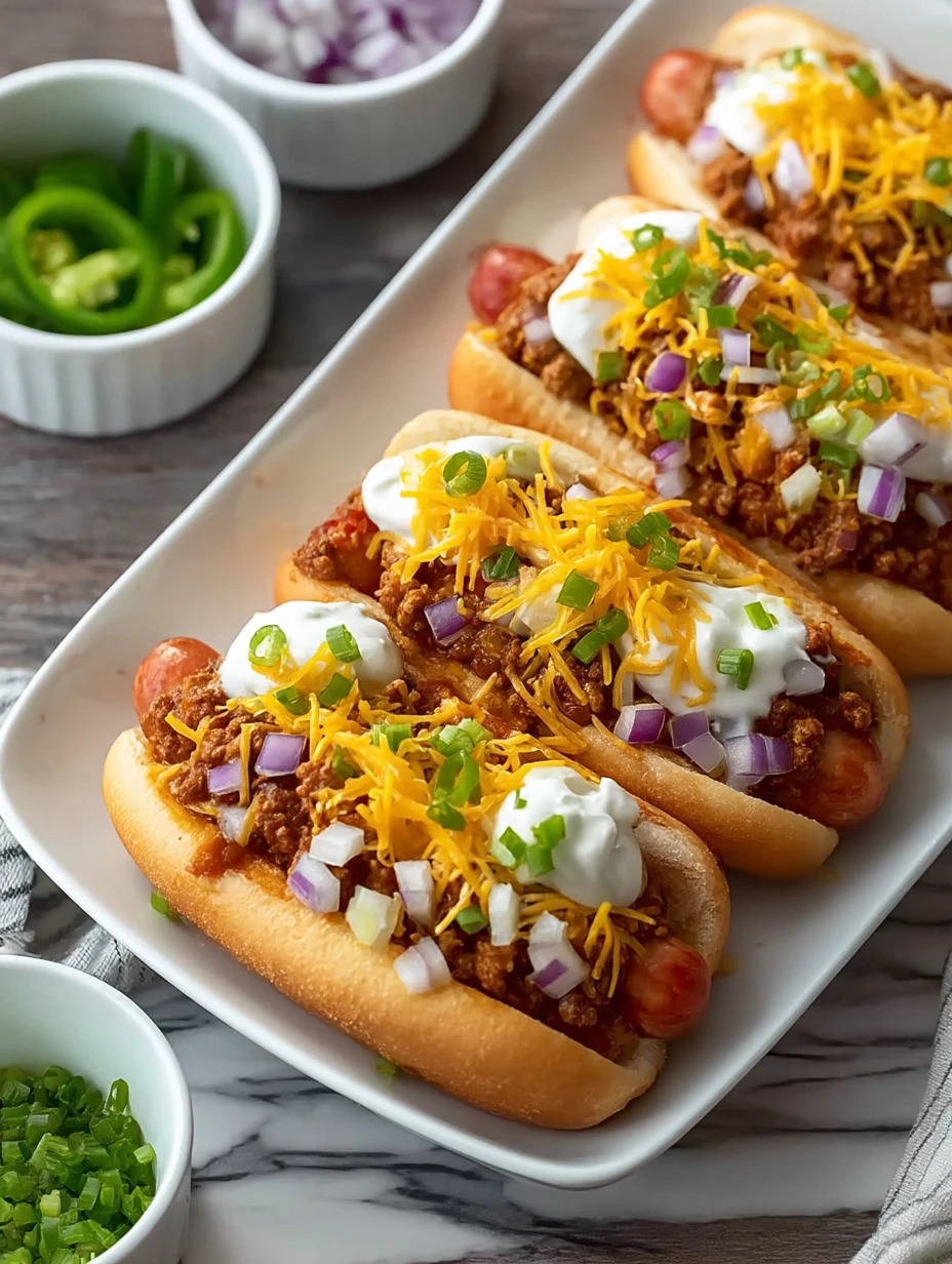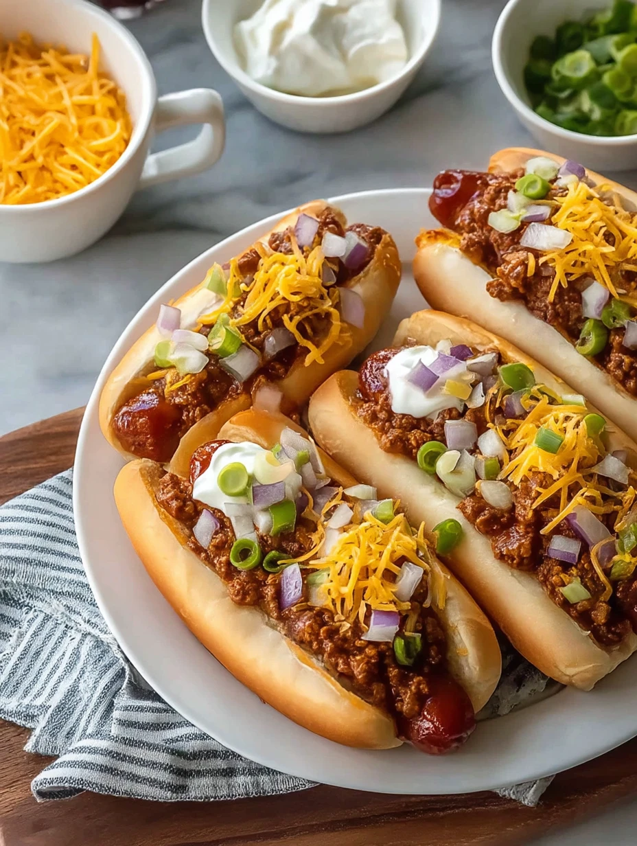 I love serving these when I’ve got a hungry crowd to feed but zero interest in juggling multiple pans. Everything happens in one slow cooker, and when it’s time to eat, I just pile the hot dogs into soft buns, smother them in chili, add a mountain of cheese, and let everyone finish theirs with onions and green onions. It’s messy, comforting, and absolutely irresistible.