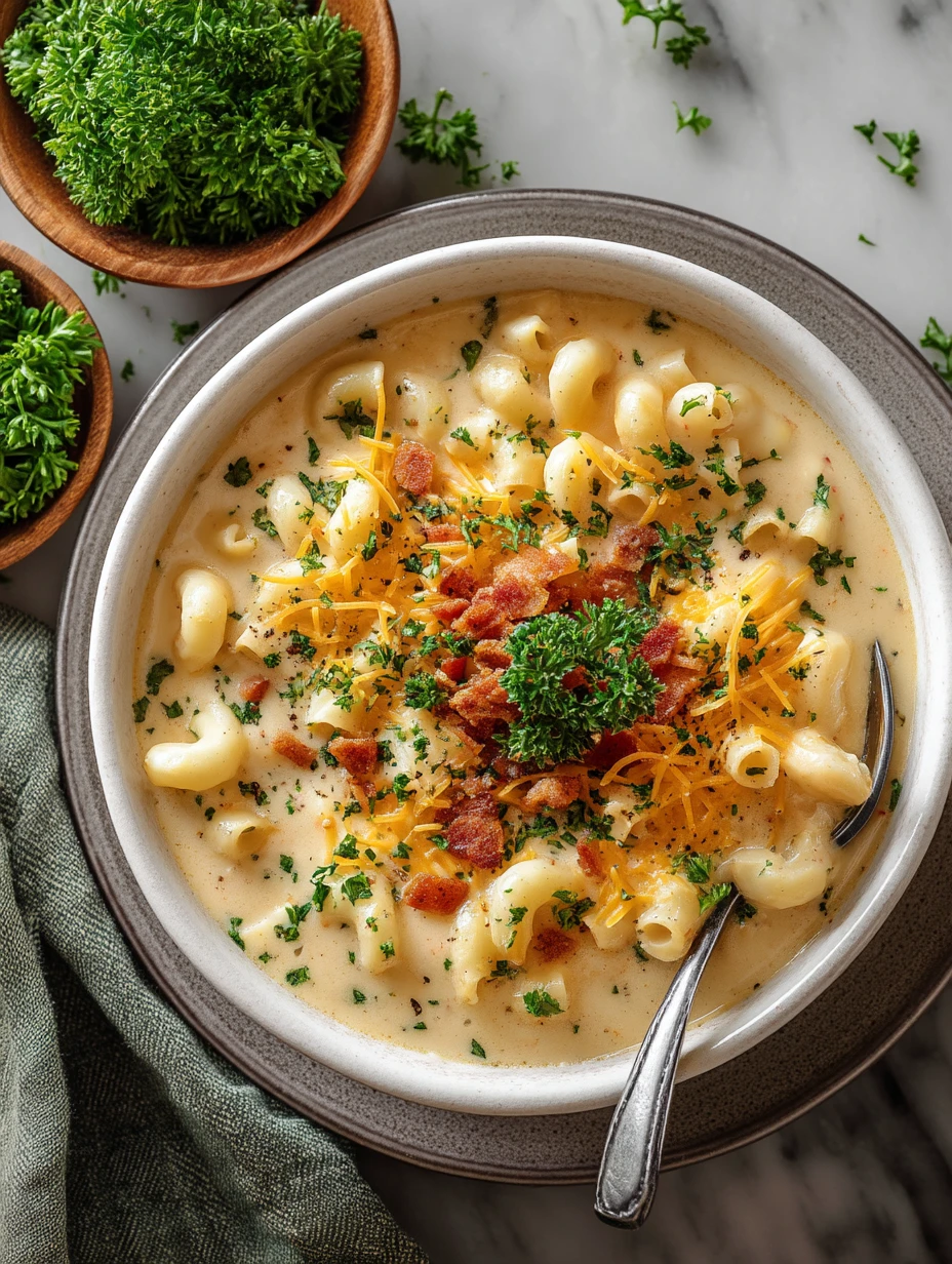 Keywords: mac and cheese soup, creamy soup, cheesy soup, comfort food, easy dinner, quick dinner, family meal, pasta soup, dinner ideas, food ideas