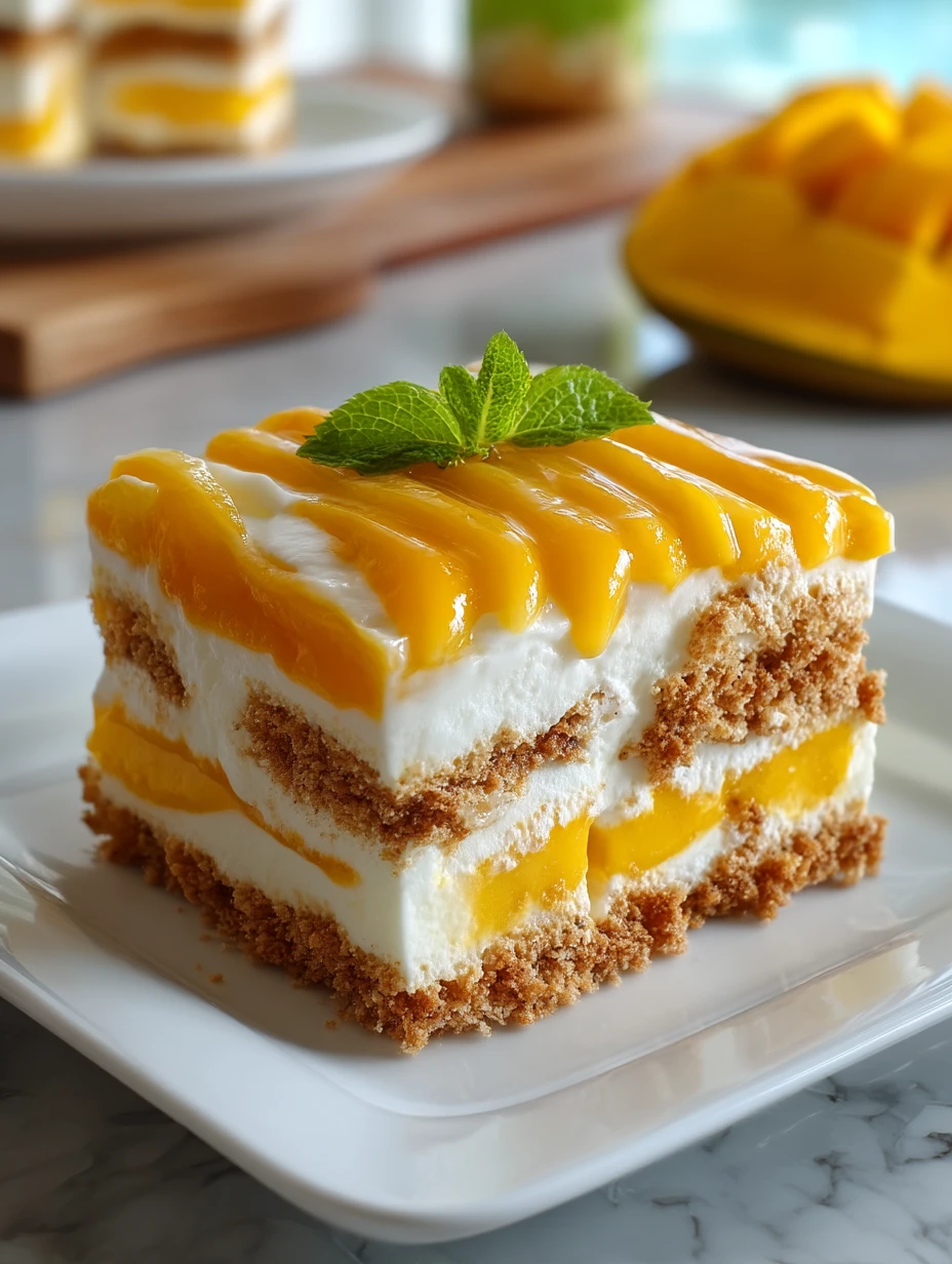 Ripe mangoes bring the signature flavor, natural sweetness, and glossy golden layers that make this dessert instantly recognizable.