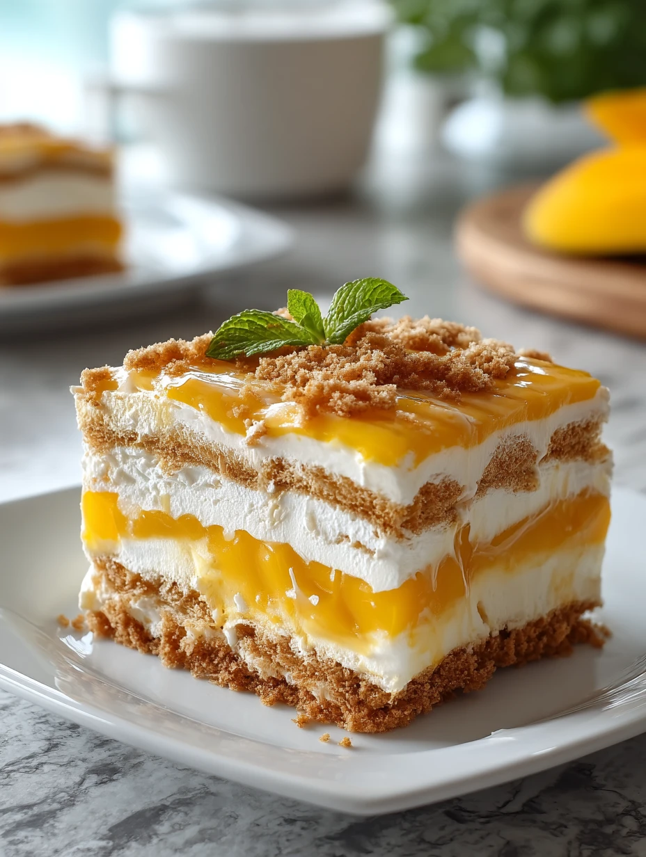 What I love most about Mango Float is how effortlessly elegant it looks once chilled. It has that creamy, fruity, make-ahead charm that works for family dinners, weekend gatherings, and holiday tables alike. After a few hours in the fridge, the crackers soften into cake-like layers and the mango flavor shines through in the prettiest way.