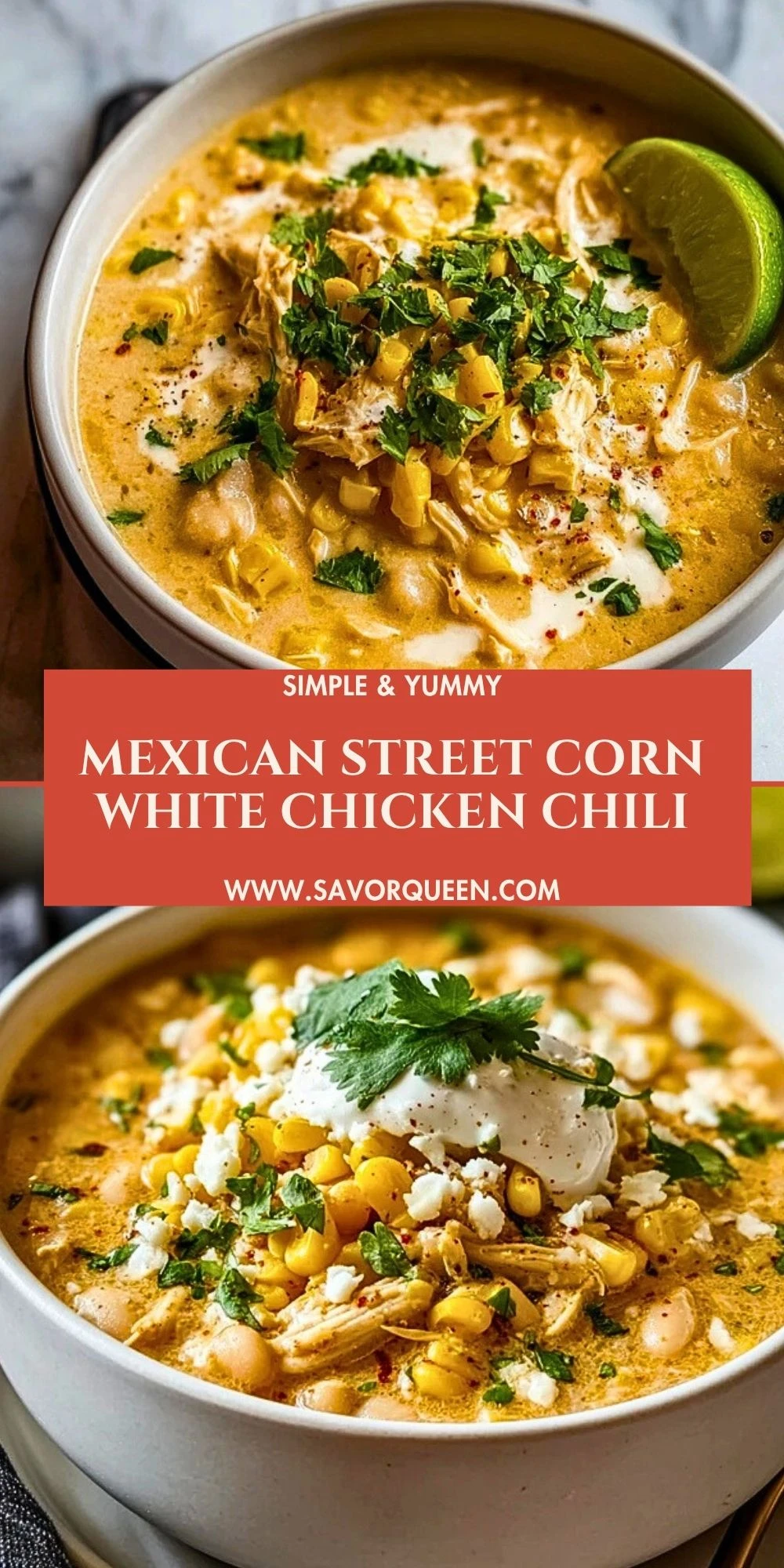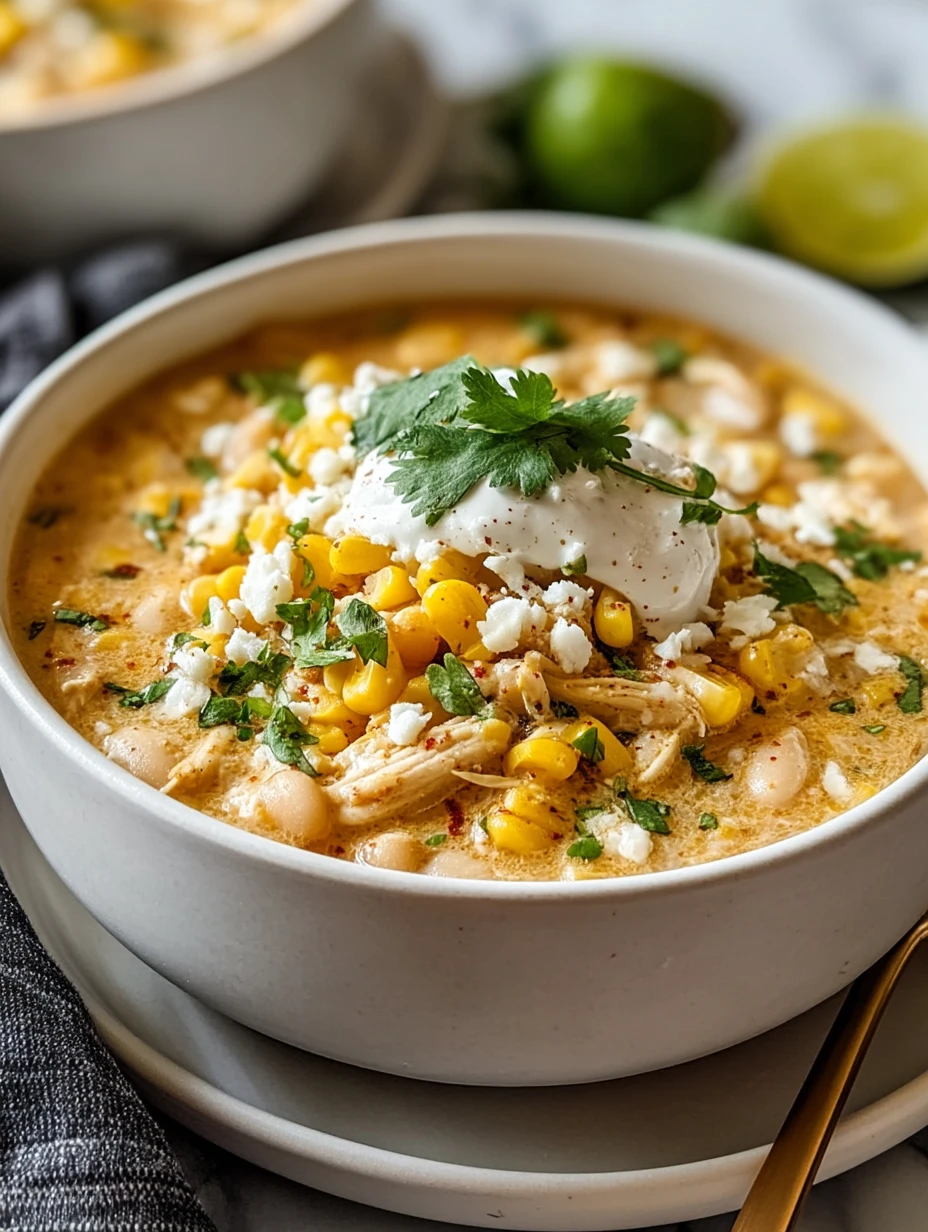 Ready to spice up your dinner game? This Mexican Street Corn White Chicken Chili is a creamy, zesty twist on classic comfort food. Loaded with tender chicken, roasted corn, white beans, and finished with a tangy swirl of lime and sour cream, this bowl brings the bold flavors of Mexican street corn right to your kitchen. Whether you’re hunting for easy dinner ideas, a cozy weeknight meal, or hearty food ideas for your next gathering, this quick and easy recipe checks all the boxes. It’s also a fantastic option if you’re craving comforting dishes without the heaviness of traditional chili.
