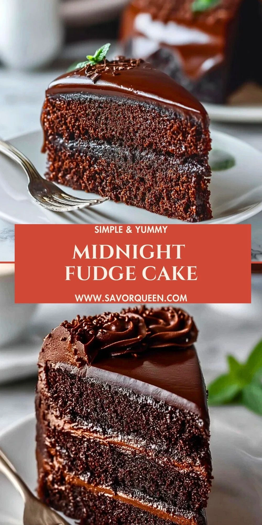 Midnight Fudge Cake is best served at room temperature when the ganache is soft and the frosting is creamy. A small slice goes a long way, so it’s great for serving a crowd. Pair it with strong coffee or a glass of red wine to balance the richness.