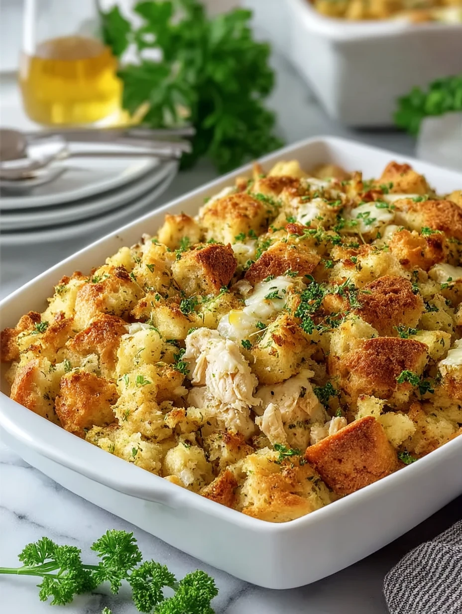 Golden, buttery, and bursting with cozy flavors, this Mouthwatering Chicken and Stuffing Casserole is the definition of comfort food. With tender shredded chicken tucked beneath a savory layer of herb-seasoned stuffing, it bakes into a bubbling, crispy-topped delight that brings the best of home cooking to your dinner table. Whether you’re feeding a hungry family or need a dish to impress at a potluck, this recipe never disappoints.