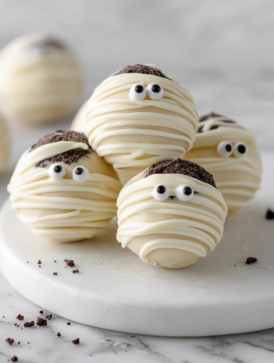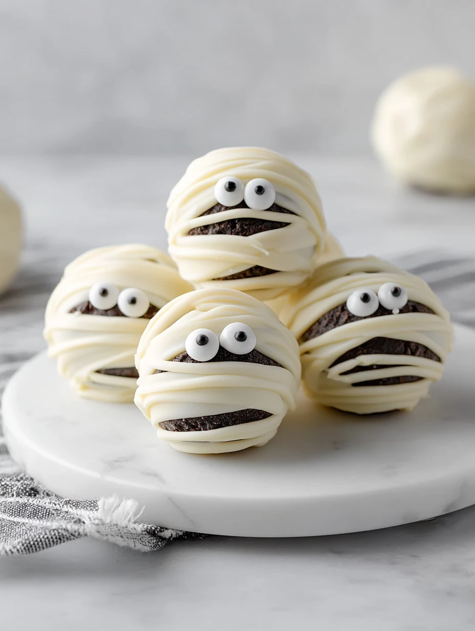 Get ready to charm your guests with these no-bake Mummy Oreo Balls! This recipe transforms classic Oreo cookies into a delicious Halloween treat wrapped in white chocolate and topped with candy eyes. These spooky-sweet bites are incredibly easy to make and require just a handful of ingredients—perfect for Halloween parties, school treats, or fun weekend projects. They’re a must-have for your dessert table if you love easy recipe ideas, fun food ideas, or are searching for Halloween desserts that make people smile. Whether you’re planning a Halloween bash or looking for something festive to make with kids, these mummy bites are a spooky (and tasty) success.