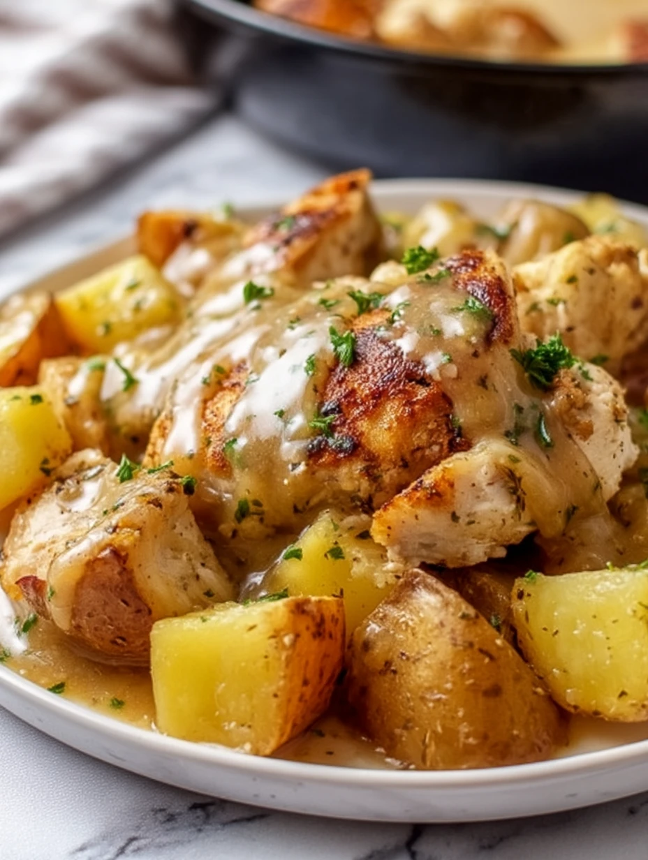 Golden, buttery potatoes paired with tender, seasoned chicken chunks, all nestled in a luscious, savory gravy and topped with bubbling, melty cheese—this One-Pan Chicken and Potatoes with Gravy is what cozy dinner dreams are made of. It’s the kind of rustic, soul-hugging dish that feels like a warm blanket on a cold night, yet it’s so simple to make you’ll want it in your weeknight rotation.