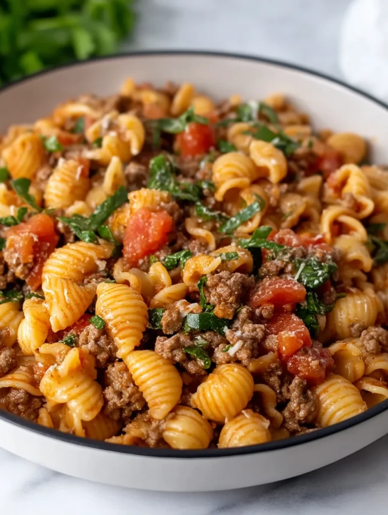 Sometimes, dinner just needs to be quick, comforting, and still feel a little wholesome. This One Pan Healthy Ground Beef Pasta is exactly that. Juicy seasoned ground beef, sautéed spinach, and sweet tomatoes hug tender shell pasta, all in a single skillet. It’s a simple recipe with big flavor and minimal cleanup, making it perfect for busy weeknights.