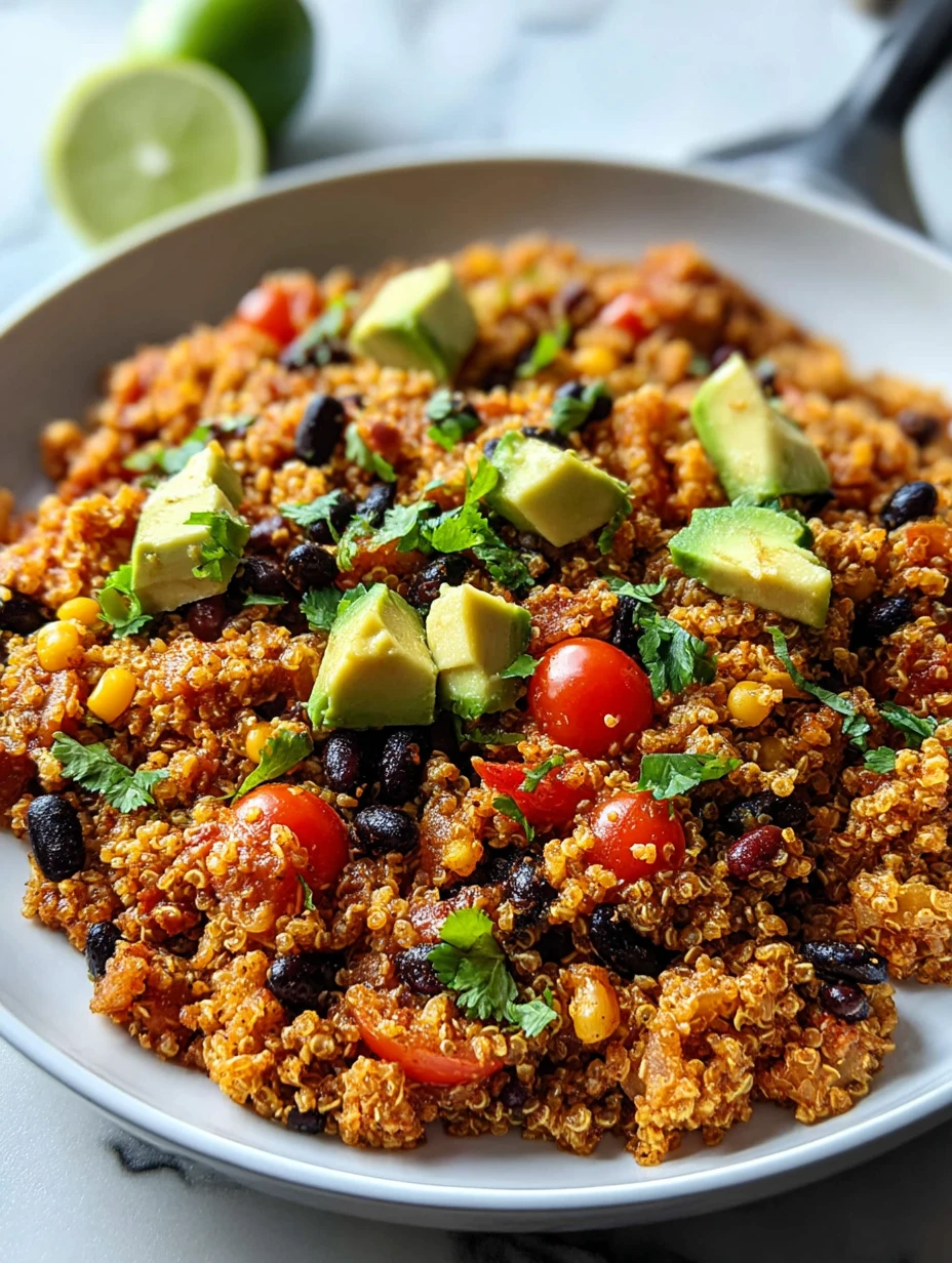 Keywords: one pan quinoa, mexican quinoa recipe, healthy dinner ideas, easy vegetarian recipe, gluten free dinner, quick meal prep
