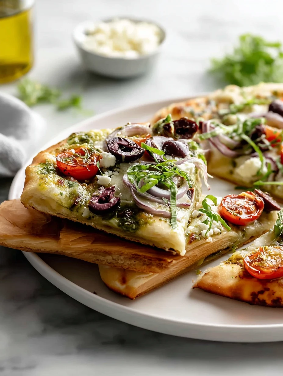 Keywords: pesto flatbread pizza, Mediterranean flatbread pizza, easy dinner, quick lunch, healthy snack, flatbread recipe, vegetarian pizza, food ideas