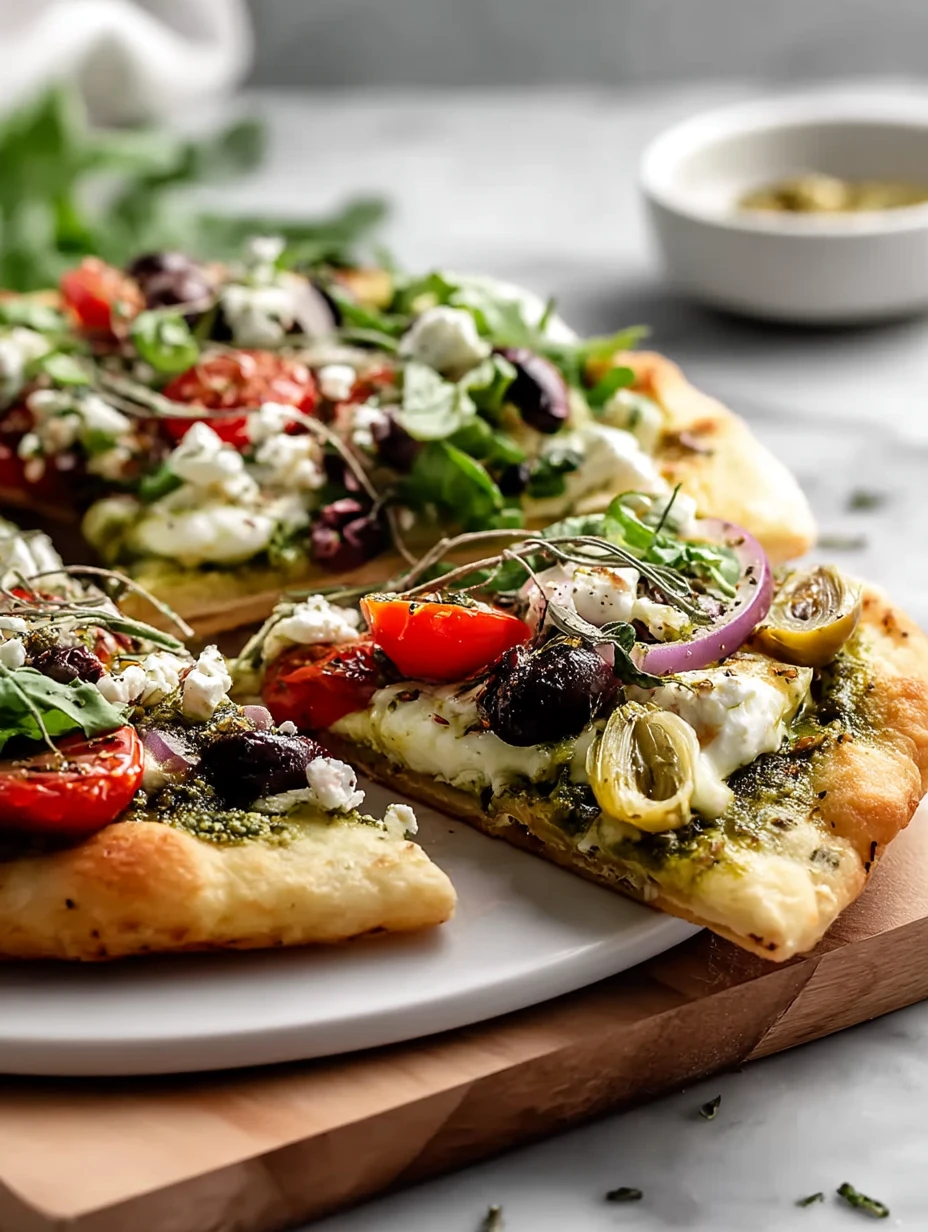 Pesto Mediterranean Flatbread Pizza