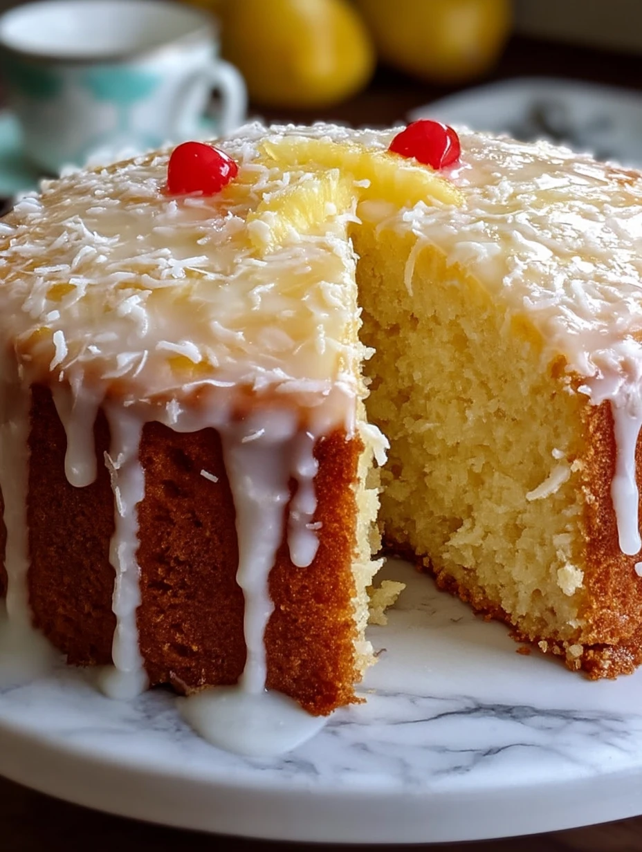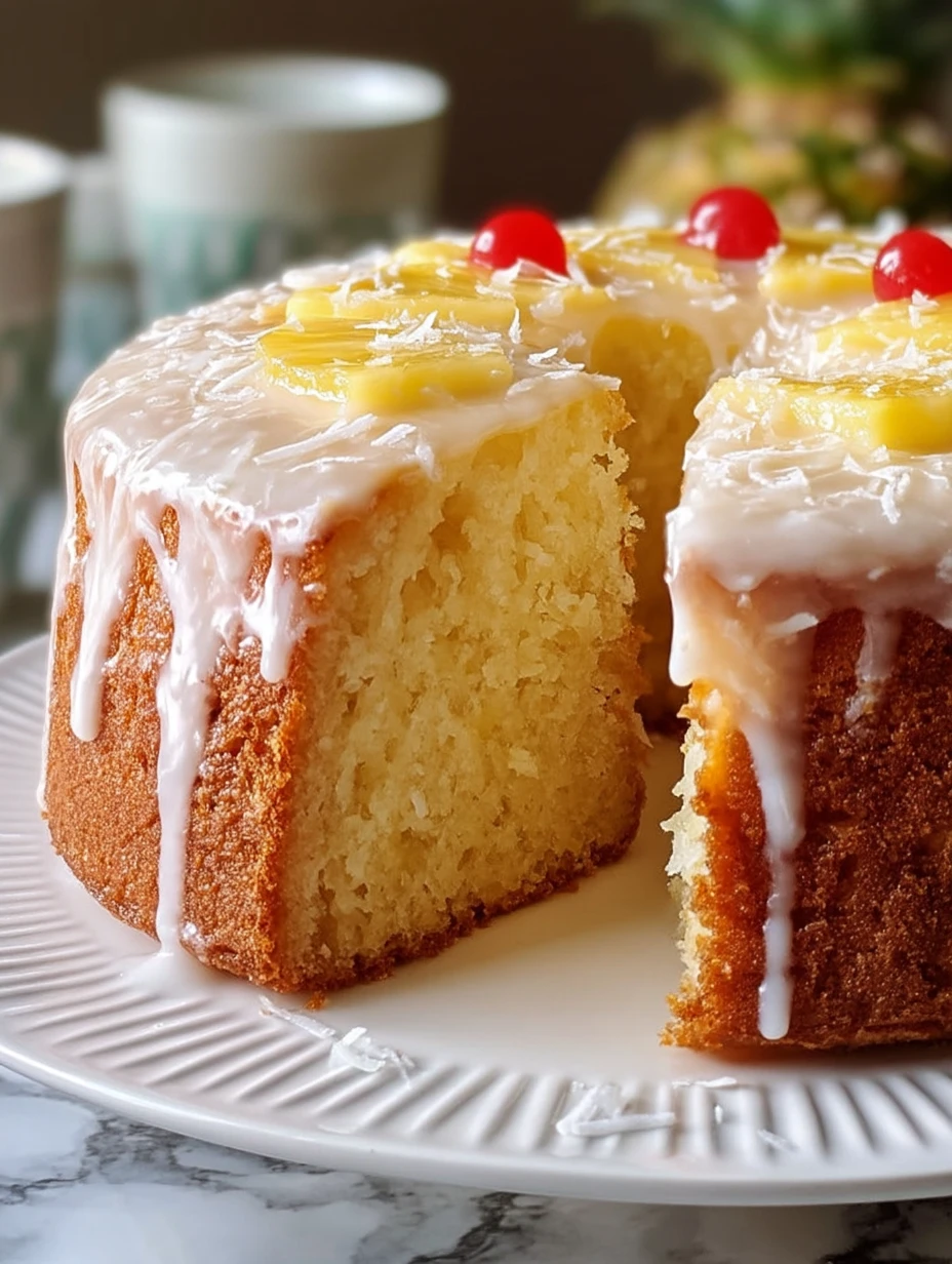Keywords: easy recipe, pineapple cake, tropical dessert, piña colada dessert, coconut pound cake