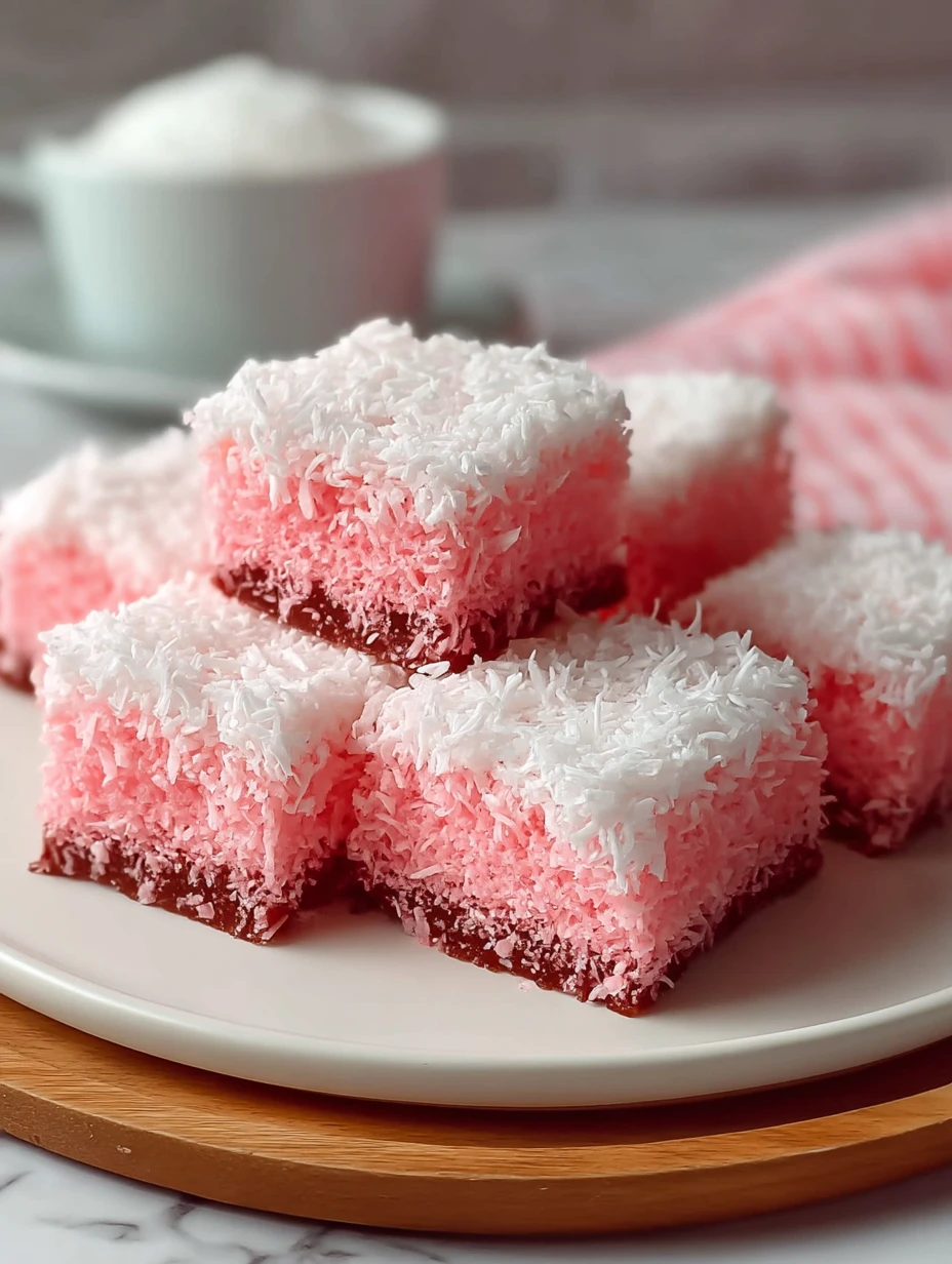 Soft, fluffy, and utterly charming, Pink Coconut Snowball Cake Bars are a show-stopping dessert that blends nostalgic texture with modern visual appeal. These triple-layered treats combine a rich chocolate cake base, a dreamy coconut cream center, and a bright, pink-tinted coconut topping that looks like it came straight out of a fairytale.
