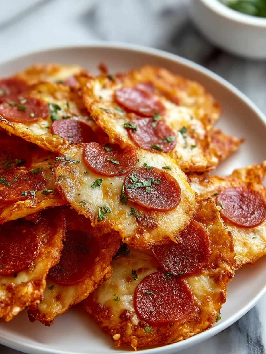 Keywords: pizza chips, easy snack, low carb snack, cheesy pepperoni chips, party appetizer, quick snack, game day food, easy recipe, food ideas