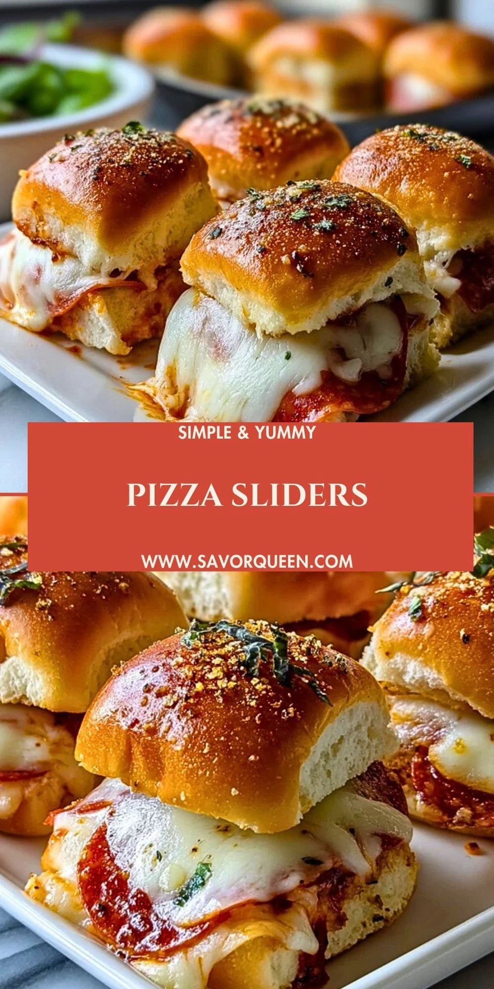 Pizza Sliders are best served hot and fresh from the oven. If you’re serving a crowd, keep them warm in a covered tray or slow cooker on the “warm” setting. Leftovers? Wrap them in foil and store in the fridge for up to 3 days. Reheat in the oven at 300°F until warmed through to revive that gooey center.