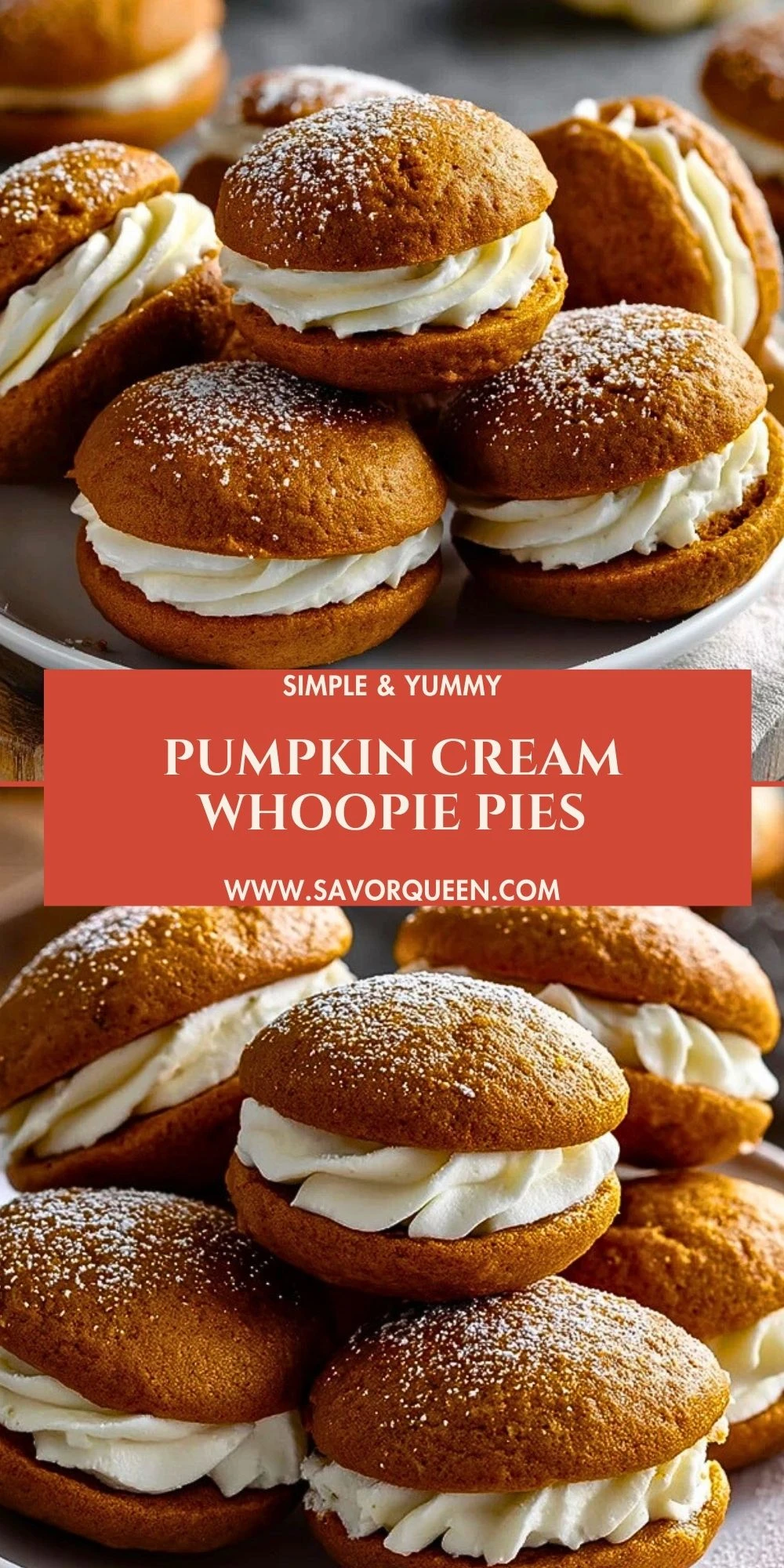 Keywords: pumpkin dessert, whoopie pies, easy fall recipe, sandwich cookies, cream cheese filling