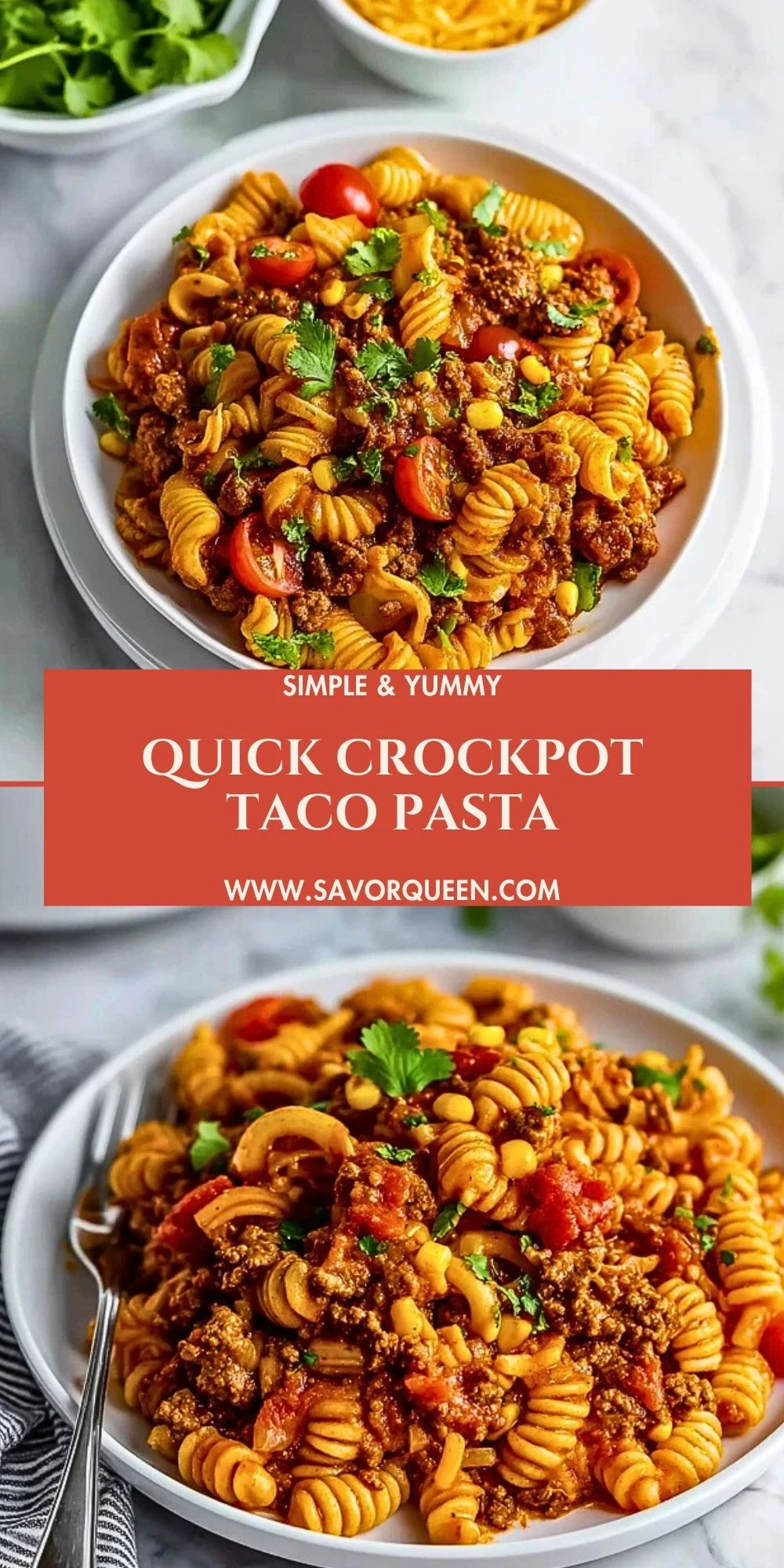 Keywords: quick dinner, easy dinner, crockpot pasta, taco pasta, slow cooker meal, family dinner ideas