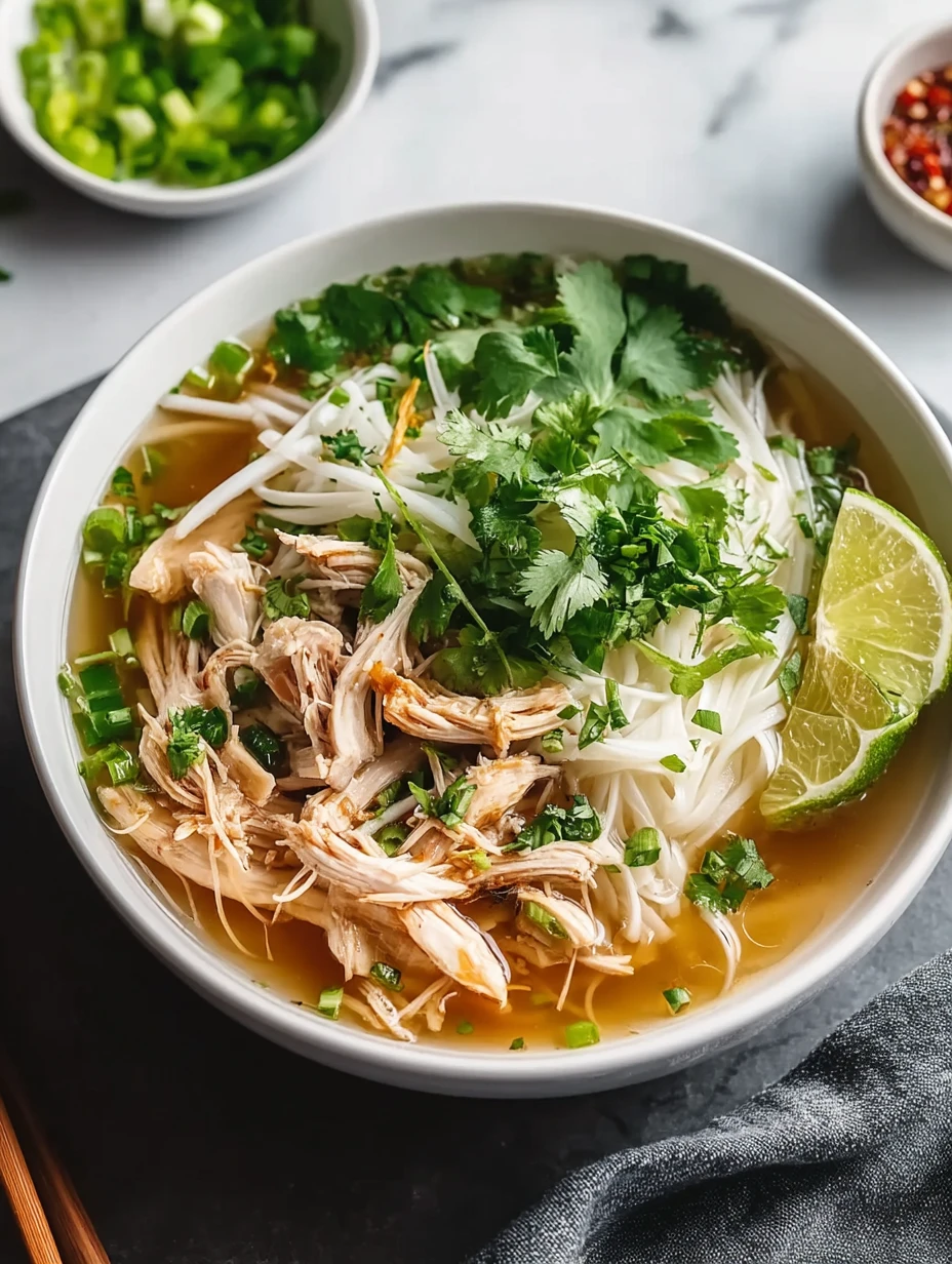 Pho is best served immediately while the broth is piping hot and the herbs fresh. Let guests build their own bowls for fun, personalized flair. Store leftover broth separately from noodles and toppings to prevent sogginess. Refrigerate broth and chicken for up to 4 days or freeze the broth up to 3 months.