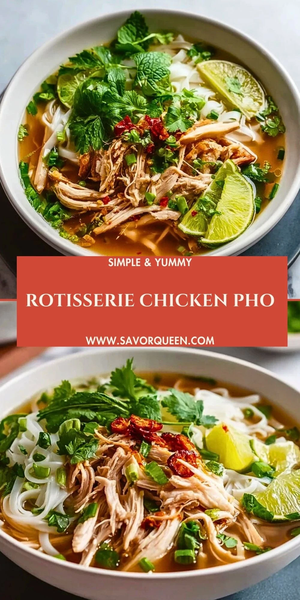 Warm your soul with this comforting and flavorful Rotisserie Chicken Pho—a shortcut version of the classic Vietnamese noodle soup. By using tender rotisserie chicken and simmering aromatics in a rich broth, this dish delivers bold flavor in a fraction of the time. It’s perfect for a quick dinner, cold-weather comfort, or a nourishing bowl when you’re feeling under the weather. This easy recipe is loaded with herbs, rice noodles, and zesty toppings, making it a go-to for fans of international food ideas, easy dinner solutions, and healthy homemade soup recipes. Ideal for lunch, dinner ideas, or cozy meal prep.