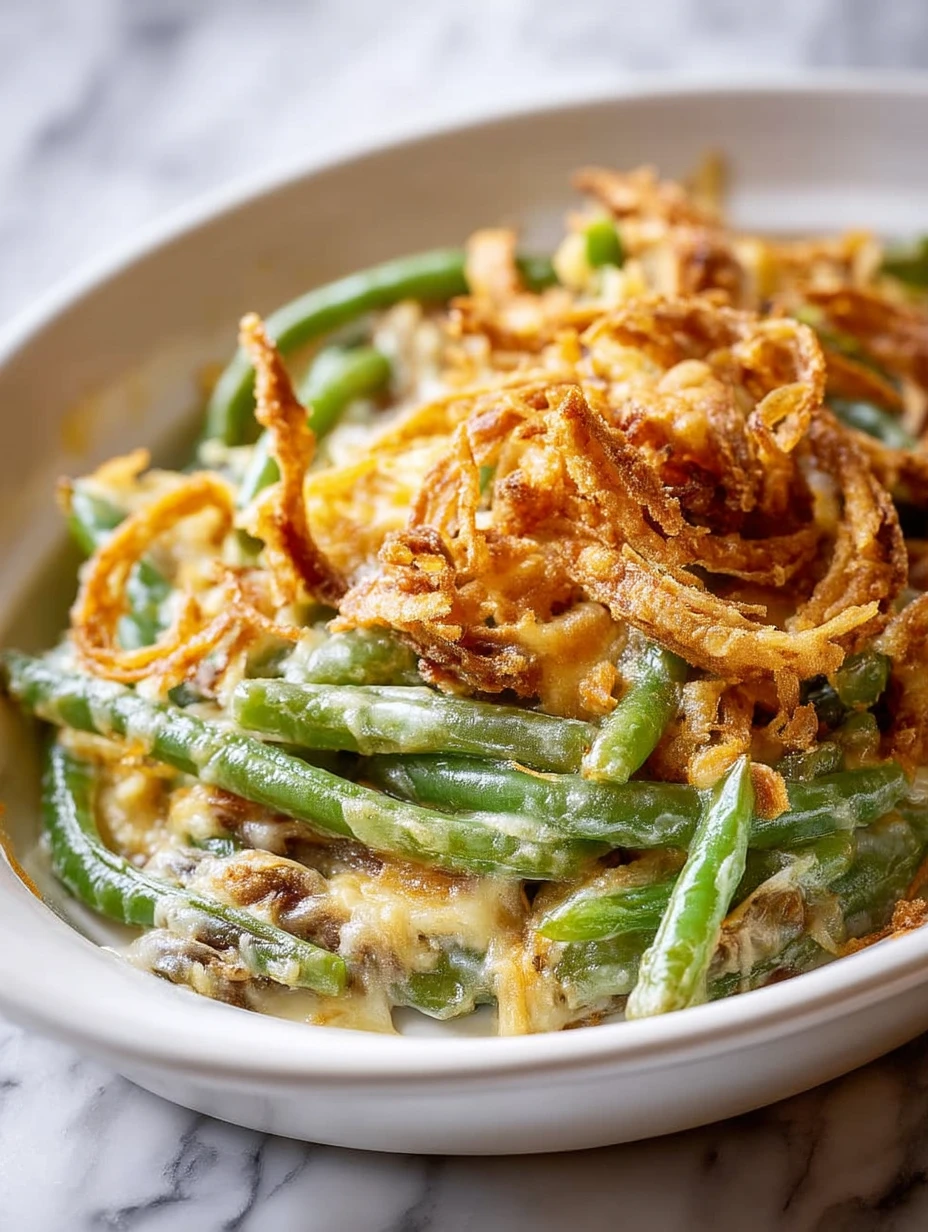 There’s just something undeniably nostalgic and comforting about a bubbling dish of Campbell’s Green Bean Casserole. Whether it’s gracing the Thanksgiving table or stealing the spotlight at a weeknight dinner, this simple, savory side dish is beloved for a reason. Crisp green beans tossed in a creamy mushroom sauce and crowned with golden fried onions – it delivers on flavor and ease, every single time.