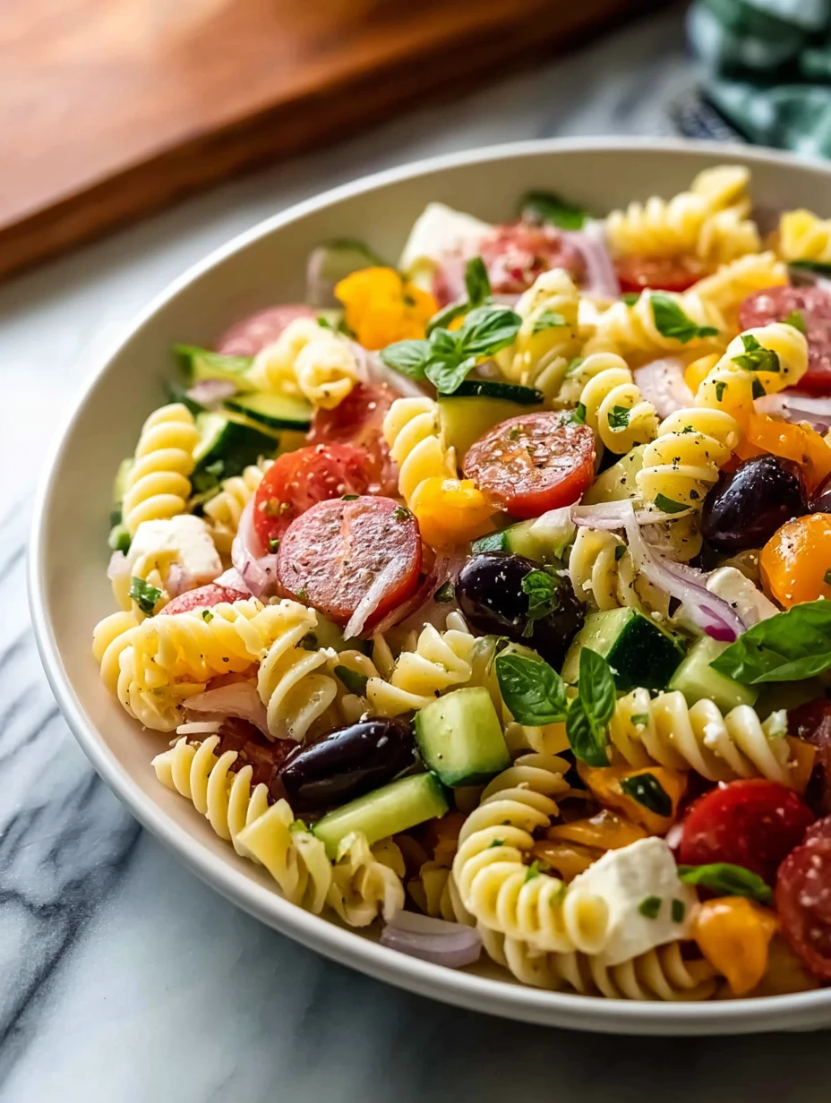 What I love most is how effortlessly it fits into real life. I can serve it at a summer cookout, pack it for lunch, or set it out as a make-ahead side for a busy weeknight dinner. Every forkful gives me a little bit of everything, and that bold Italian-inspired mix of flavors always keeps me coming back for one more bite.