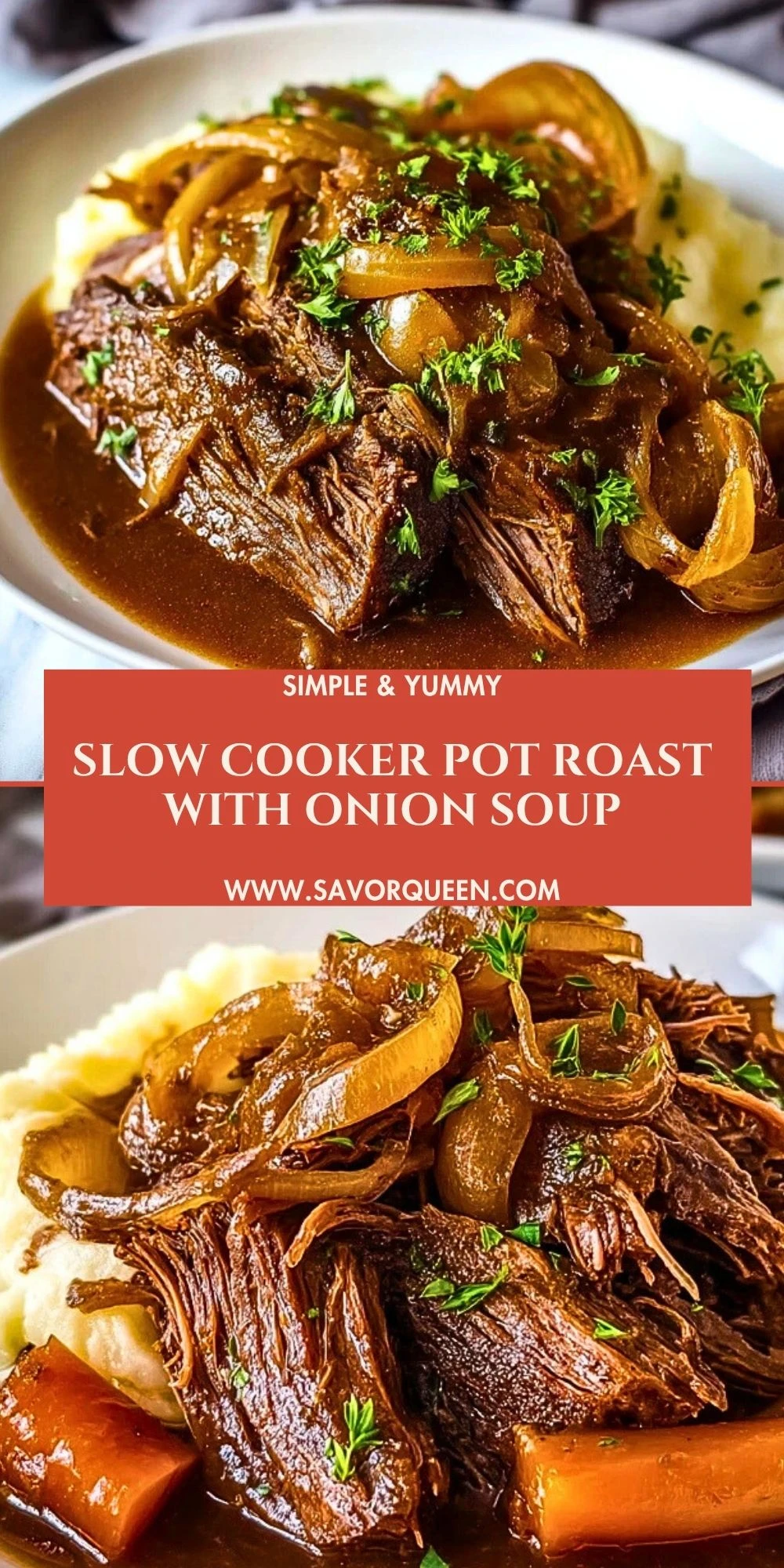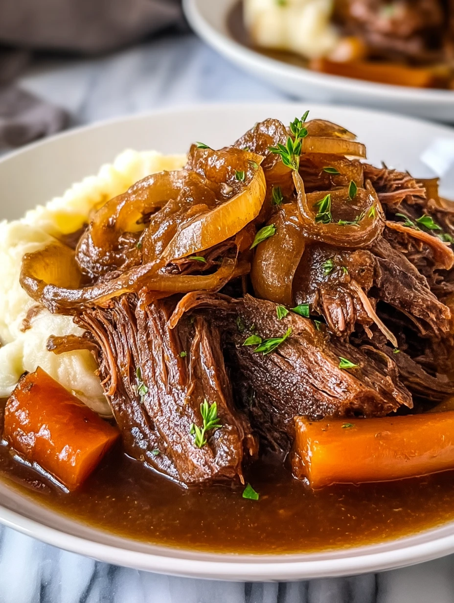 Imagine coming home to the rich aroma of tender beef melting into a savory gravy, sweet onions caramelizing into perfection, and your favorite side of mashed potatoes just waiting to be smothered. That’s exactly what this Slow Cooker Pot Roast with Onion Soup delivers—an effortless, hearty comfort meal straight from your slow cooker.