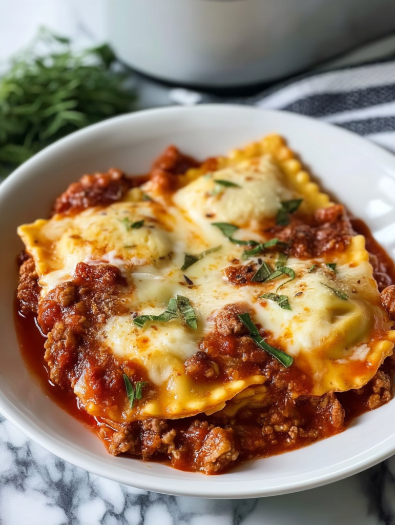 Slow Cooker Ravioli Lasagna is the ultimate hassle-free comfort food. With layers of frozen ravioli, savory meat sauce, and gooey cheese, this dish delivers all the richness of traditional lasagna—without the fuss. Just toss everything into your slow cooker and let it work its magic. It’s a family-friendly dinner winner that’s ideal for quick dinners, meal prepping, or lazy weekend food ideas. Whether you’re looking for an easy recipe, a quick dinner fix, or cozy comfort food, this lasagna hits the spot!