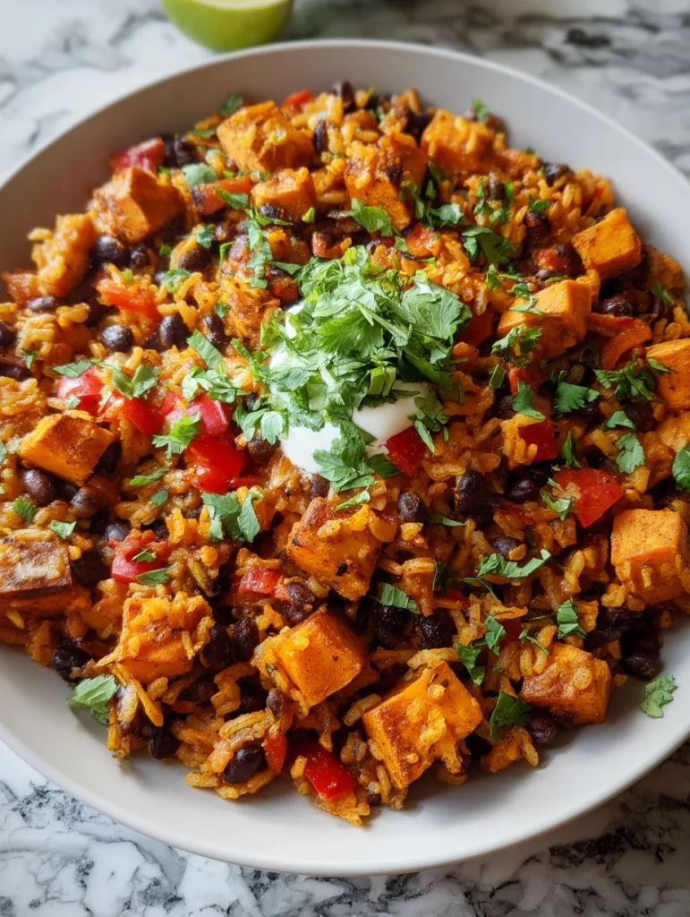 Imagine soft cubes of roasted sweet potatoes nestled with smoky black beans and fluffy rice, tossed together with red bell pepper, garlic, and bold Tex-Mex seasoning. A finish of freshly chopped cilantro adds brightness, while the whole dish comes together in under 45 minutes.