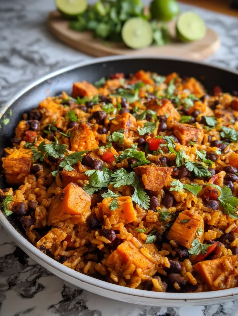 Say goodbye to bland weeknight meals with this vibrant, comforting, and nourishing one-pan wonder. This Southwest Sweet Potato Black Bean and Rice Skillet Bliss is loaded with roasted sweet potatoes, smoky black beans, fluffy rice, and bold spices—all ready in under 45 minutes. Whether you’re looking for an easy dinner, a meal prep hero, or healthy vegetarian food ideas, this easy recipe checks every box. It’s packed with fiber, plant-based protein, and zesty flavor. If you’re after quick dinner ideas or colorful one-skillet dinners, this recipe is for you.