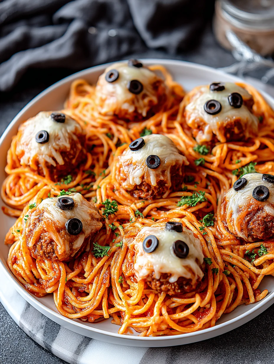 If you’re looking for a festive, frightfully fun dinner to serve this Halloween (or any playful night), Spooky Spaghetti & Cheesy Monster Meatballs is your answer. This dish isn’t just eye-catching—it’s incredibly satisfying and kid-approved. Picture savory meatballs draped in melty mozzarella, with creepy olive eyes staring back at you from a cozy nest of spaghetti in rich marinara sauce.
