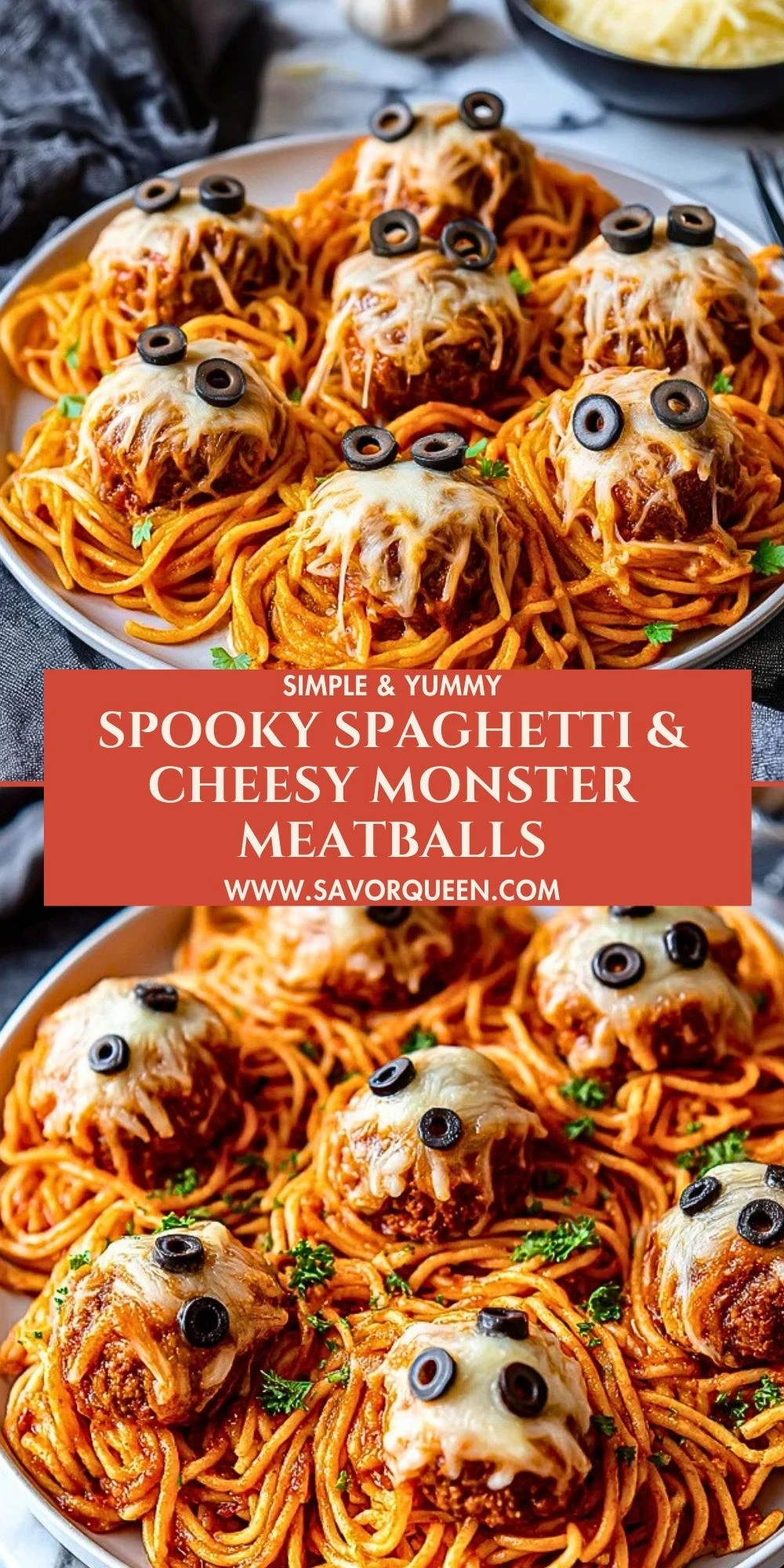 Spooky Spaghetti & Cheesy Monster Meatballs