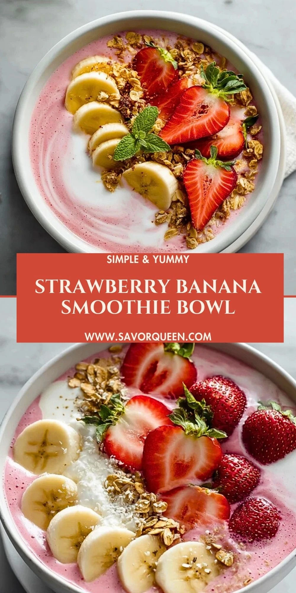 Keywords: strawberry banana smoothie bowl, quick breakfast, healthy snack, breakfast ideas, easy recipe, smoothie bowl, food ideas