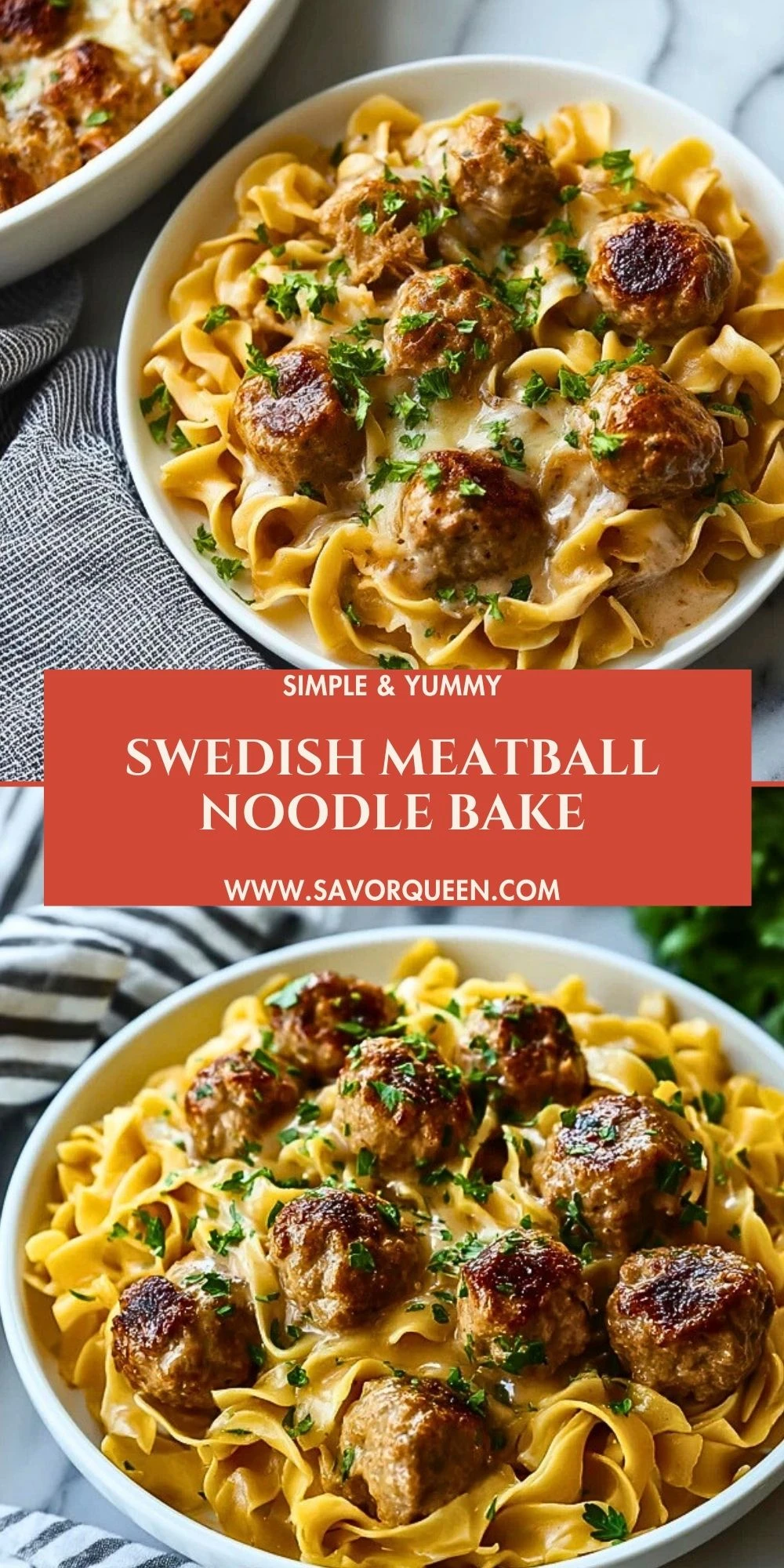 Keywords: Swedish meatball noodle bake, Swedish meatball casserole, noodle bake, easy dinner, comfort food, pasta bake, dinner ideas, easy recipe