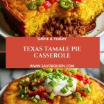 Sink your fork into this comforting Texas Tamale Pie Casserole — a flavorful Tex-Mex fusion of seasoned ground beef, corn, black beans, and zesty tomatoes with chilies, all tucked under a golden, cheesy cornbread crust. Perfect for an easy dinner, meal prep, or feeding a hungry crowd, this one-dish wonder is bold, hearty, and satisfying. Great for fans of easy recipes, casserole dishes, and flavor-packed food ideas, it’s sure to become a staple in your weeknight dinner rotation. If you’re on the hunt for quick dinner ideas or cozy fall meal inspiration, this is a winner.