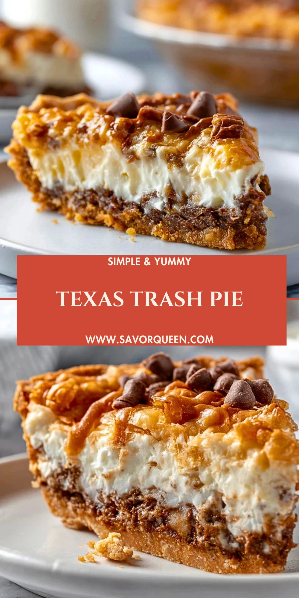 Keywords: Texas Trash Pie, easy dessert, Southern pie, chocolate caramel pie, coconut pecan pie, holiday dessert, pie recipe, comfort food dessert