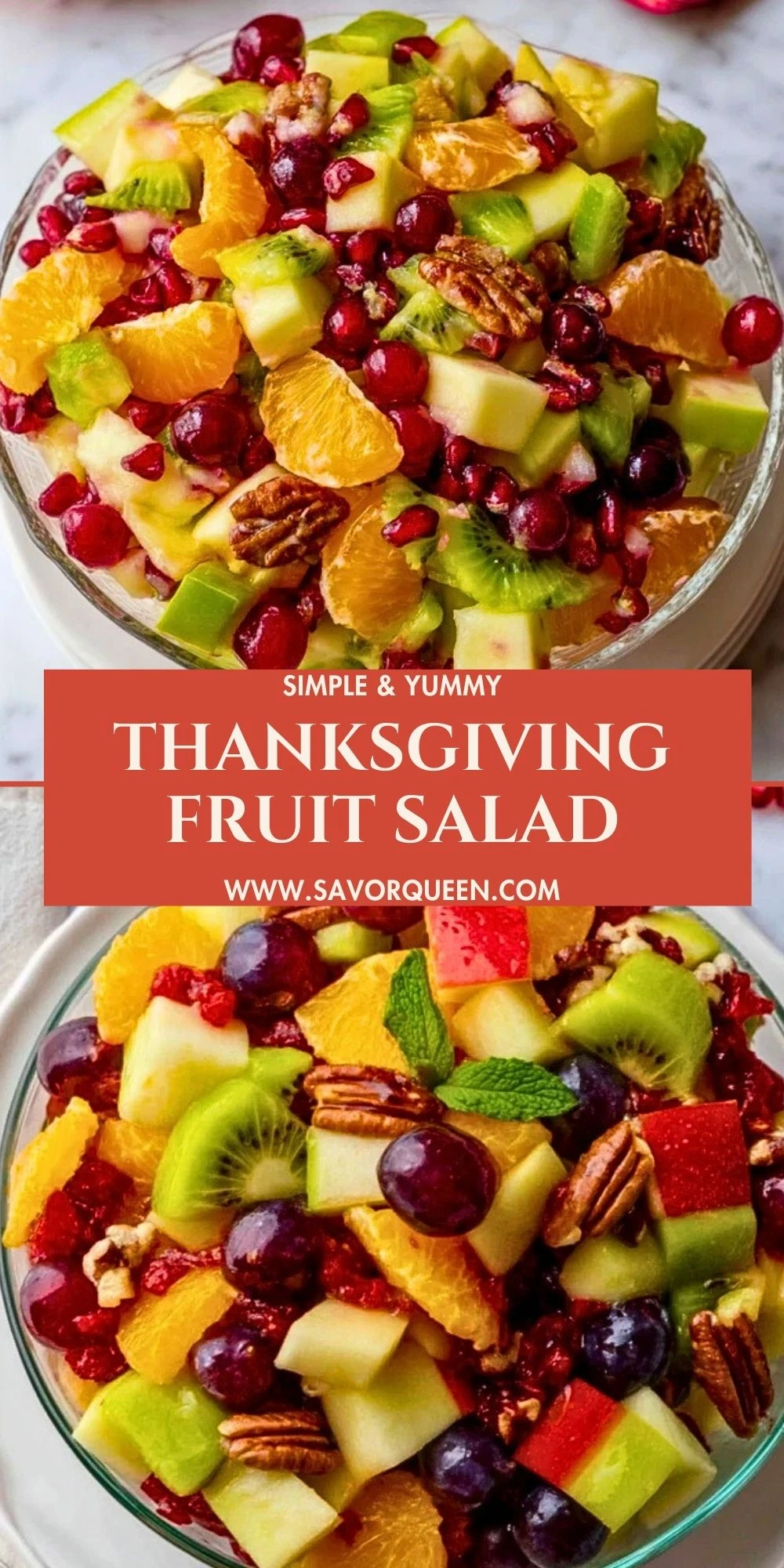 Add a burst of freshness to your holiday spread with this Thanksgiving Fruit Salad—a colorful, juicy, and crunchy blend of apples, oranges, cranberries, and pecans. It’s a refreshing side dish that balances the richness of classic Thanksgiving meals. Lightly dressed with honey and lemon, this salad is a naturally sweet, gluten-free option that works beautifully as a side, starter, or dessert. Great for anyone looking for easy recipes, healthy snacks, or light Thanksgiving food ideas.